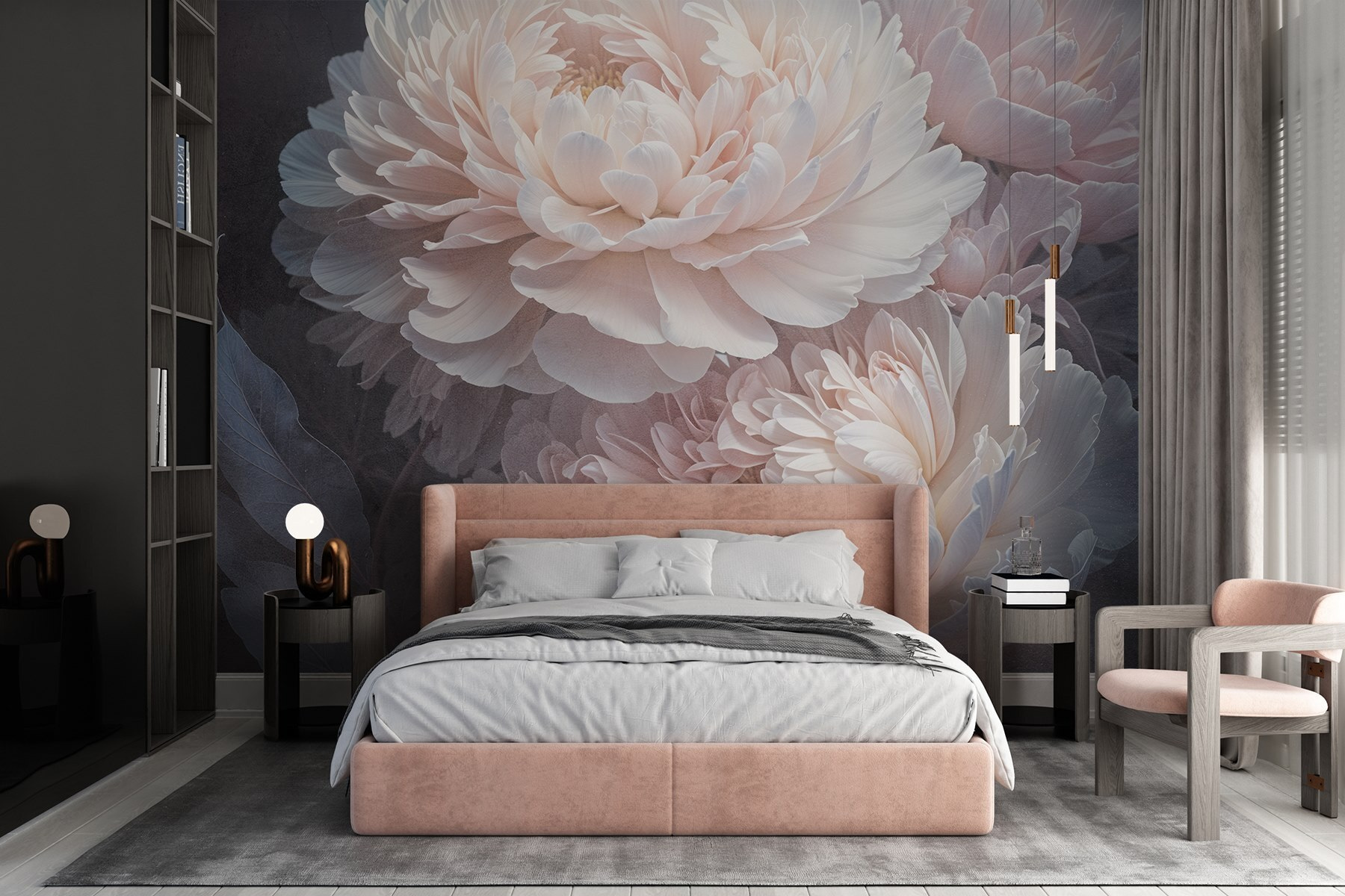 Guardate esattamente come apparirà il vostro spazio con la nuova carta da parati prima di acquistarla. Visualizzazione professionale da parte di designer esperti senza alcun costo o obbligo di acquisto.