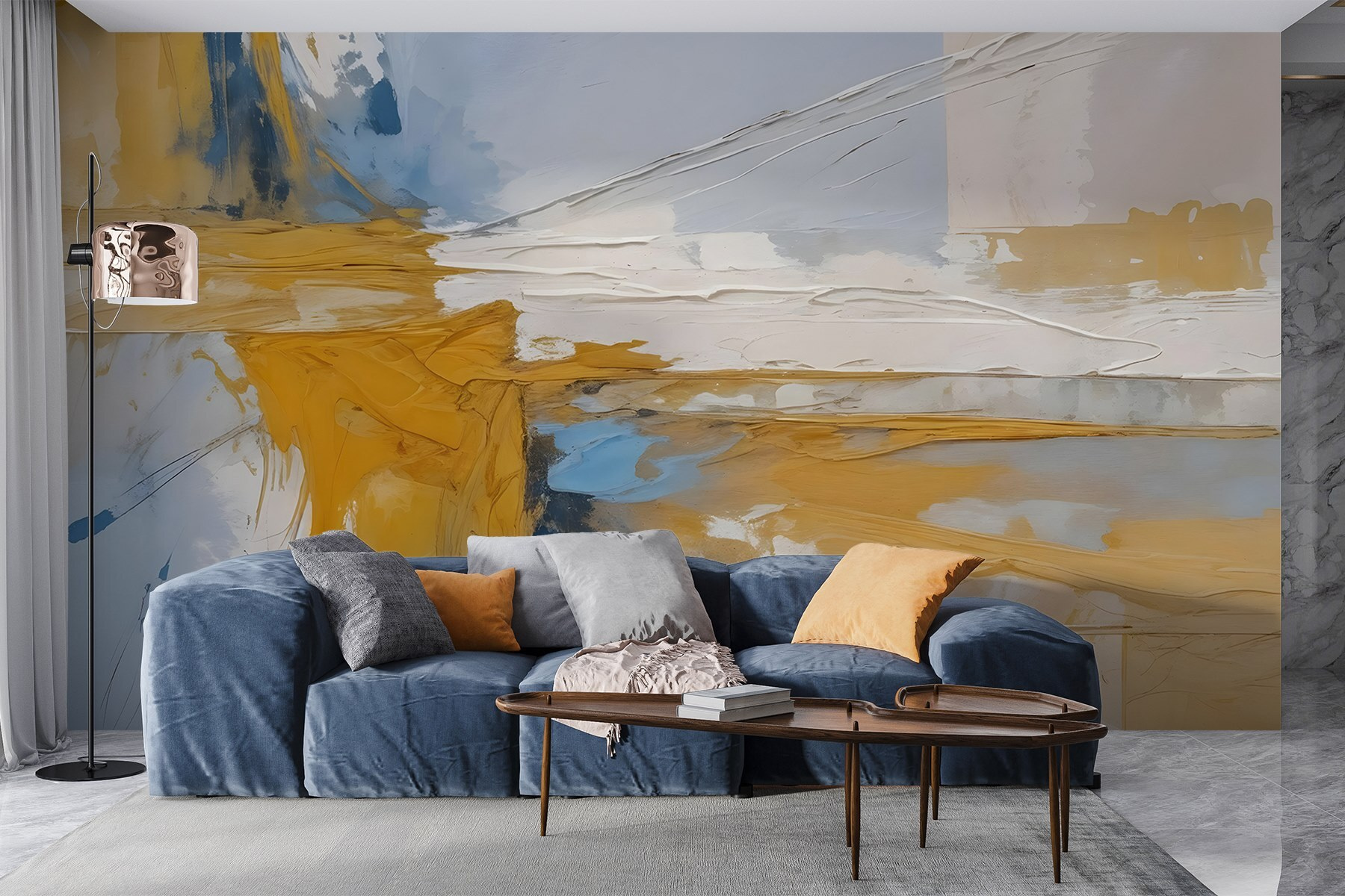 Guardate esattamente come apparirà il vostro spazio con la nuova carta da parati prima di acquistarla. Visualizzazione professionale da parte di designer esperti senza alcun costo o obbligo di acquisto.