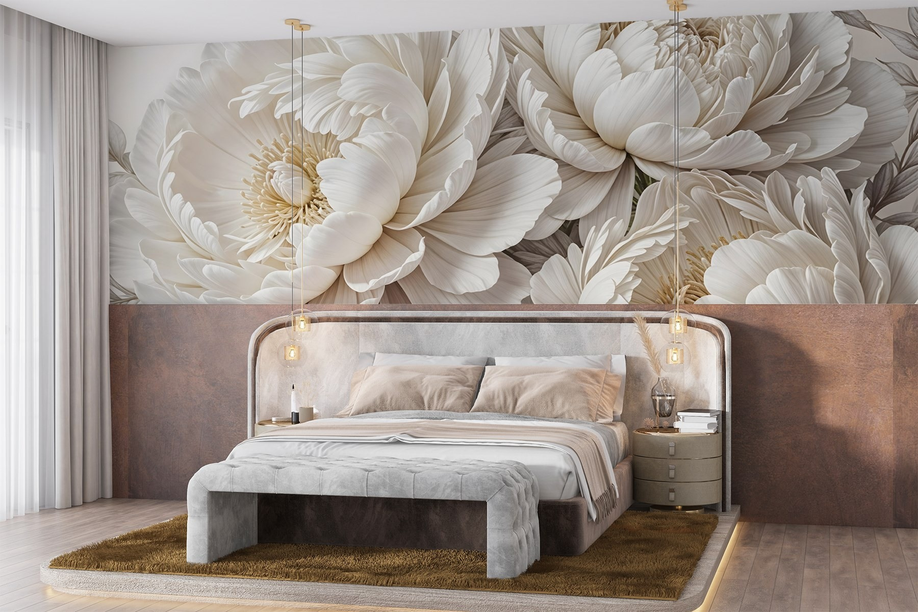 Trasformate qualsiasi stanza in una serena fuga in giardino con questo splendido murale che raffigura un bouquet di morbidi fiori bianchi. È come portare una boccata d’aria fresca nel vostro spazio, senza il polline! Ogni peonia sboccia con tale eleganza che potreste sentirvi ispirati a organizzare un tea party o almeno a sedervi con un buon libro e una tazza di qualcosa di caldo. Le tonalità tenui e i petali delicati creano uno sfondo rilassante, rendendolo perfetto per un salotto accogliente o una camera da letto tranquilla. Immaginate di svegliarvi tutti i giorni con questo spettacolo: è un toccasana per l’umore! Che sia per un’atmosfera sofisticata o semplicemente per aggiungere un po’ di fascino floreale, questo murale sussurra bellezza e pace, invitando chiunque lo veda a prendersi un momento e a respirare profondamente.