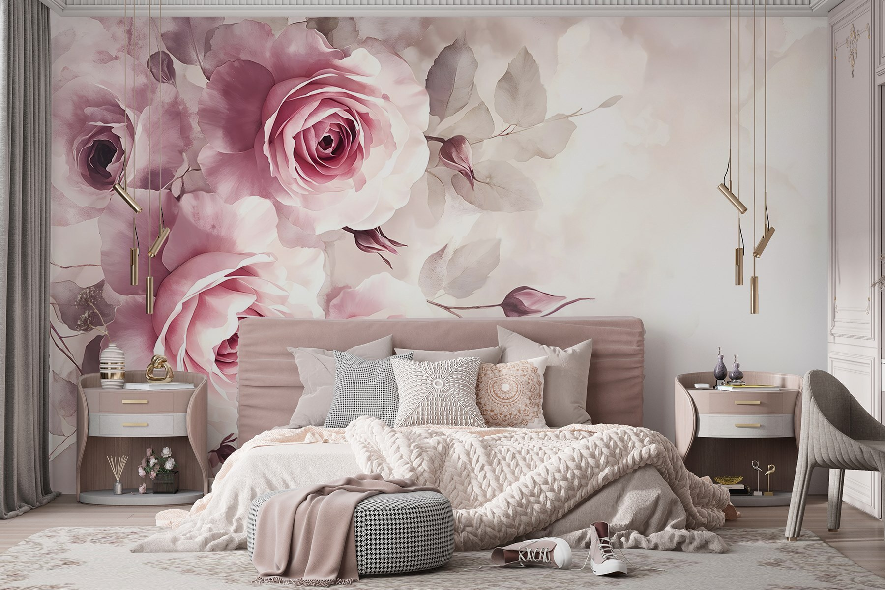 Trasformate qualsiasi stanza in un giardino sereno con questo delizioso murale con un affascinante gruppo di rose rosa. Immaginate di svegliarvi ogni mattina con questi fiori morbidi e romantici, come se la natura avesse deciso di decorare personalmente il vostro spazio. Le tonalità delicate aggiungono calore, perfette per le serate accoglienti trascorse sorseggiando un tè o un bicchiere di vino. Inoltre, danno il giusto tocco di colore senza essere invadenti.