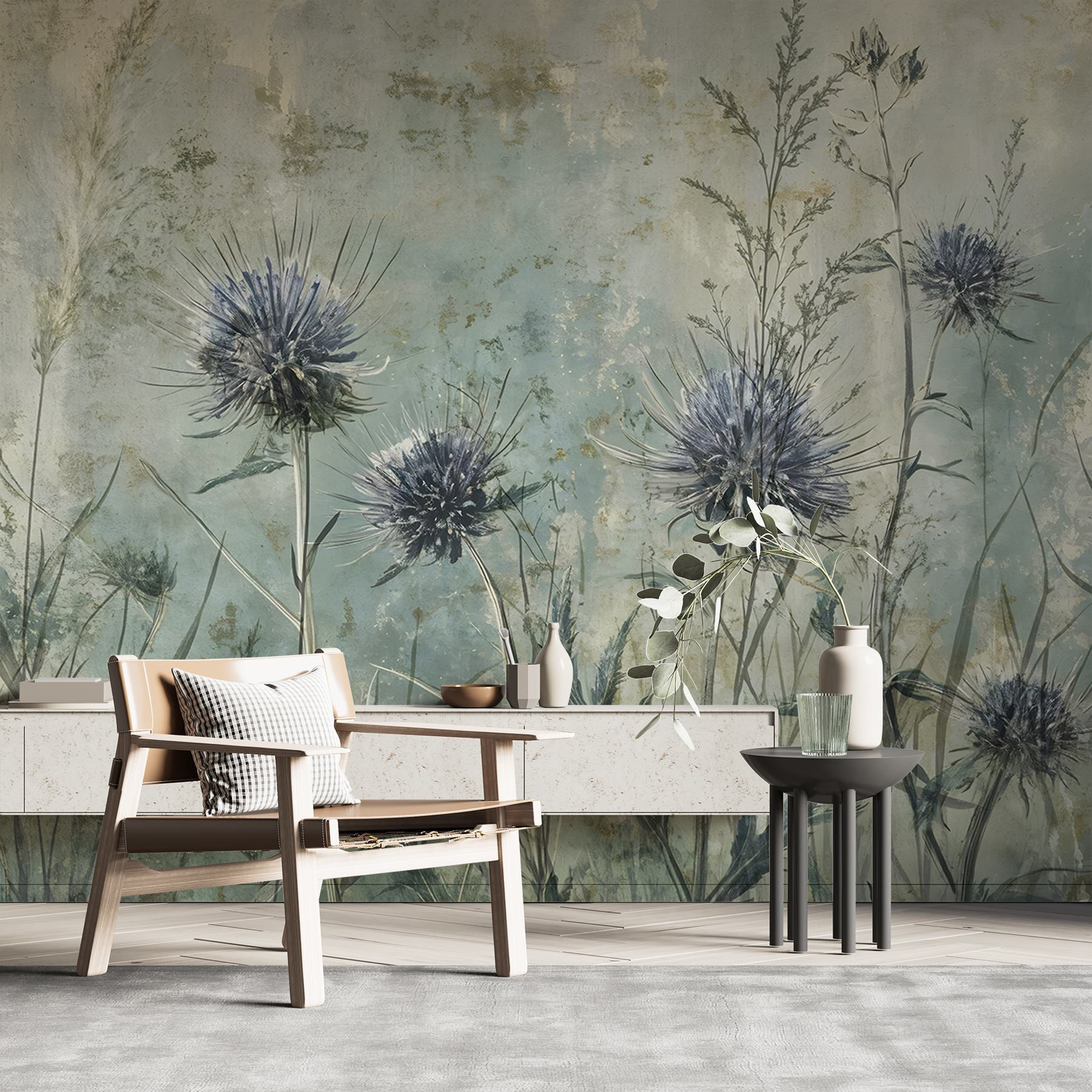 Trasformate qualsiasi spazio in una fuga serena con questo incantevole murale di fiori e piante. Immaginate di svegliarvi in mezzo a dolci blu e verdi, dove le alte erbe ondeggiano e le vibranti fioriture invitano a sorridere. Perfetto per chi ama la natura, è come avere un giardino tranquillo in salotto. Gli amici potrebbero entrare, fermarsi e dire: “Wow, dove l’hai preso?”. Suscita conversazioni e attira le persone. I colori tenui infondono un senso di calma, rendendolo ideale per serate accoglienti o mattinate tranquille. Chi non vorrebbe tornare a casa con una piccola fetta di natura?