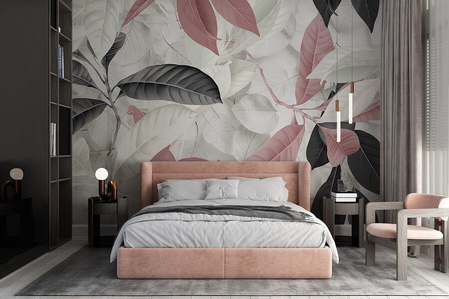 Trasformate qualsiasi spazio in un rifugio sereno con “Nature’s Palette in Soft Hues”. Questo murale dà l’impressione di crogiolarsi sotto un baldacchino lussureggiante, ma senza insetti o pollini – grazie al cielo! Le foglie delicate in rosa tenue, bianchi morbidi e neri profondi danzano sulla parete, sussurrando vibrazioni tranquille. Immaginate di accoccolarvi con il vostro libro preferito, circondati da queste dolci tonalità, come se la natura stessa vi stesse cullando.