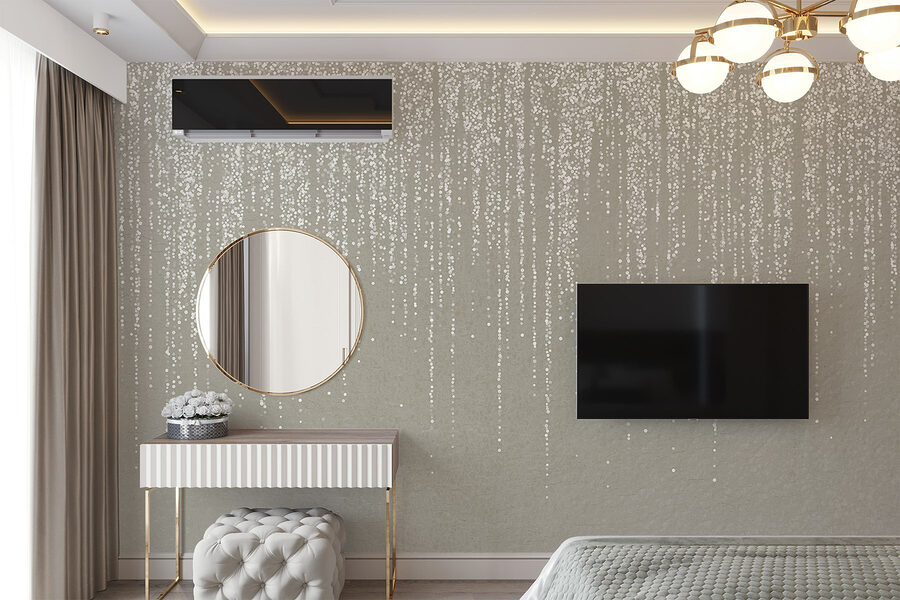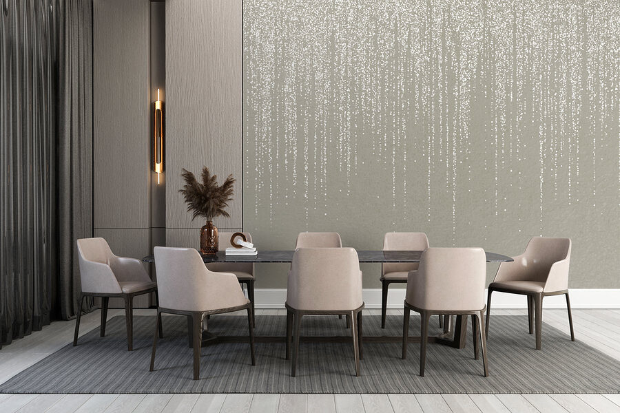Trasformare uno spazio può sembrare una magia e questo murale, “White Specks on a Grey Surface”, fa esattamente questo. Immaginate di entrare in una stanza in cui quelle macchie morbide e delicate sembrano danzare giocosamente su uno sfondo grigio e tranquillo. È come una leggera nevicata, ma sulla vostra parete!