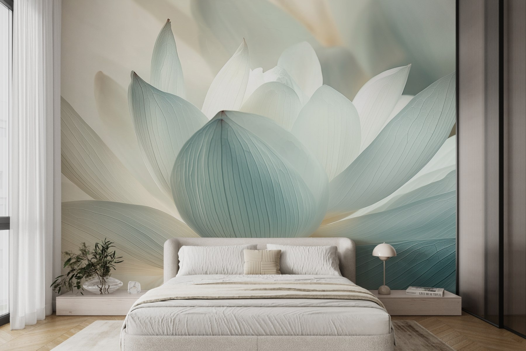 È difficile non sorridere guardando questi colori tenui, vero? Immaginate di ospitare amici che non potranno fare a meno di commentare il vostro fantastico gusto. Questo murale non è solo una decorazione, è un invito a rilassarsi e a respirare. Quindi, perché aspettare? Lasciate che questi delicati petali diano vita alle vostre pareti e al vostro spirito!