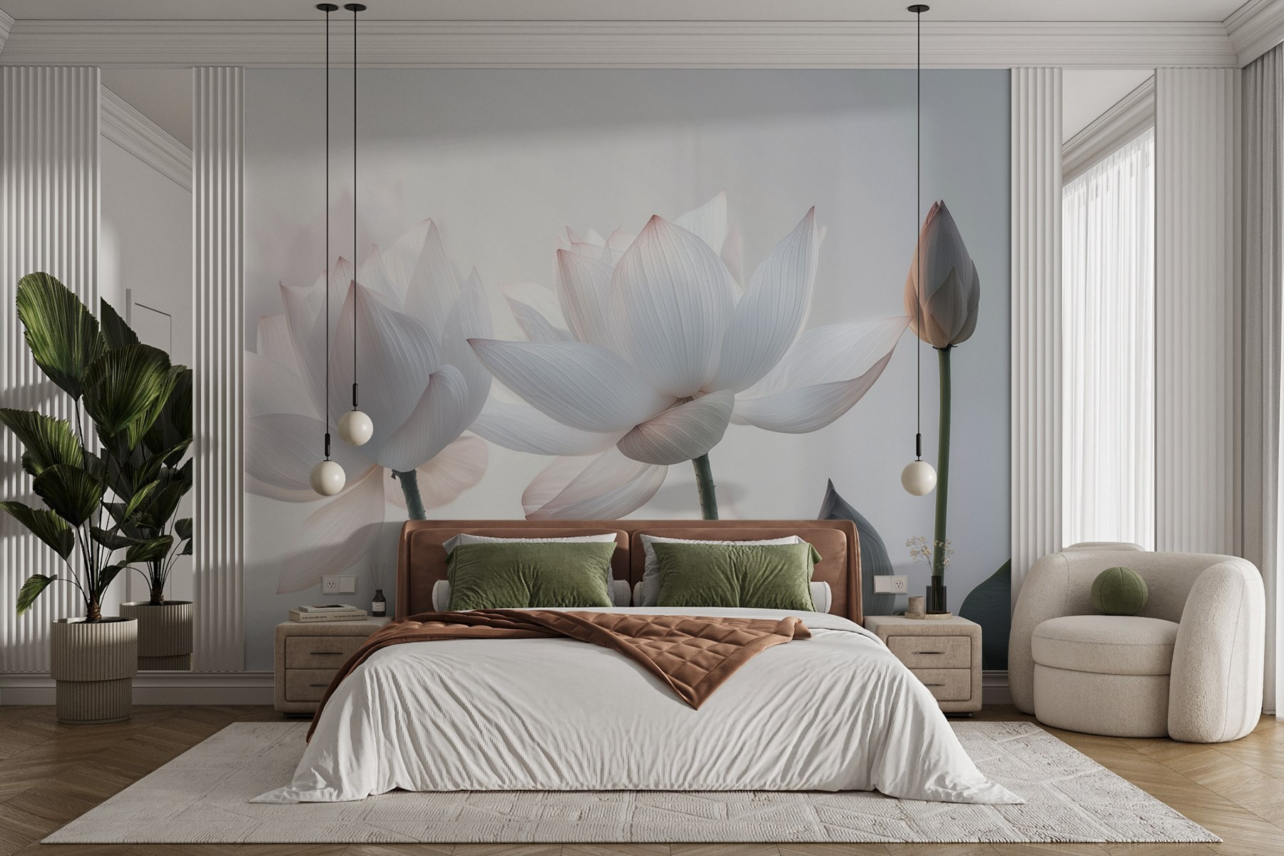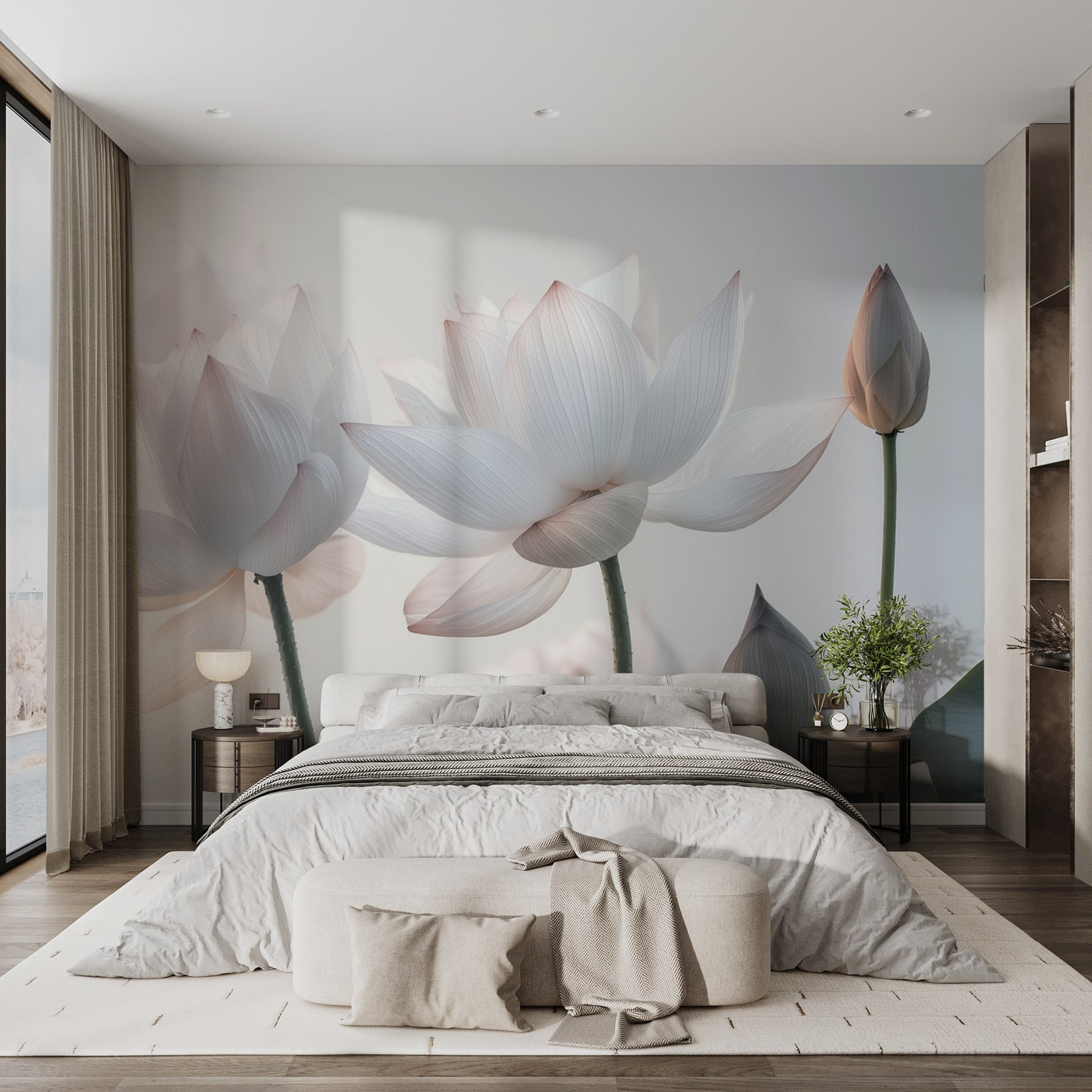 Immaginate di entrare in una stanza che sembra baciata dalla primavera, tutto l’anno. Questo murale, “Delicate Blooms in Soft Light”, trasforma qualsiasi parete spenta in un giardino sognante di fiori tranquilli. Sono come piccoli sussurri della natura, che portano una vibrazione di calma che ammorbidisce lo spazio.