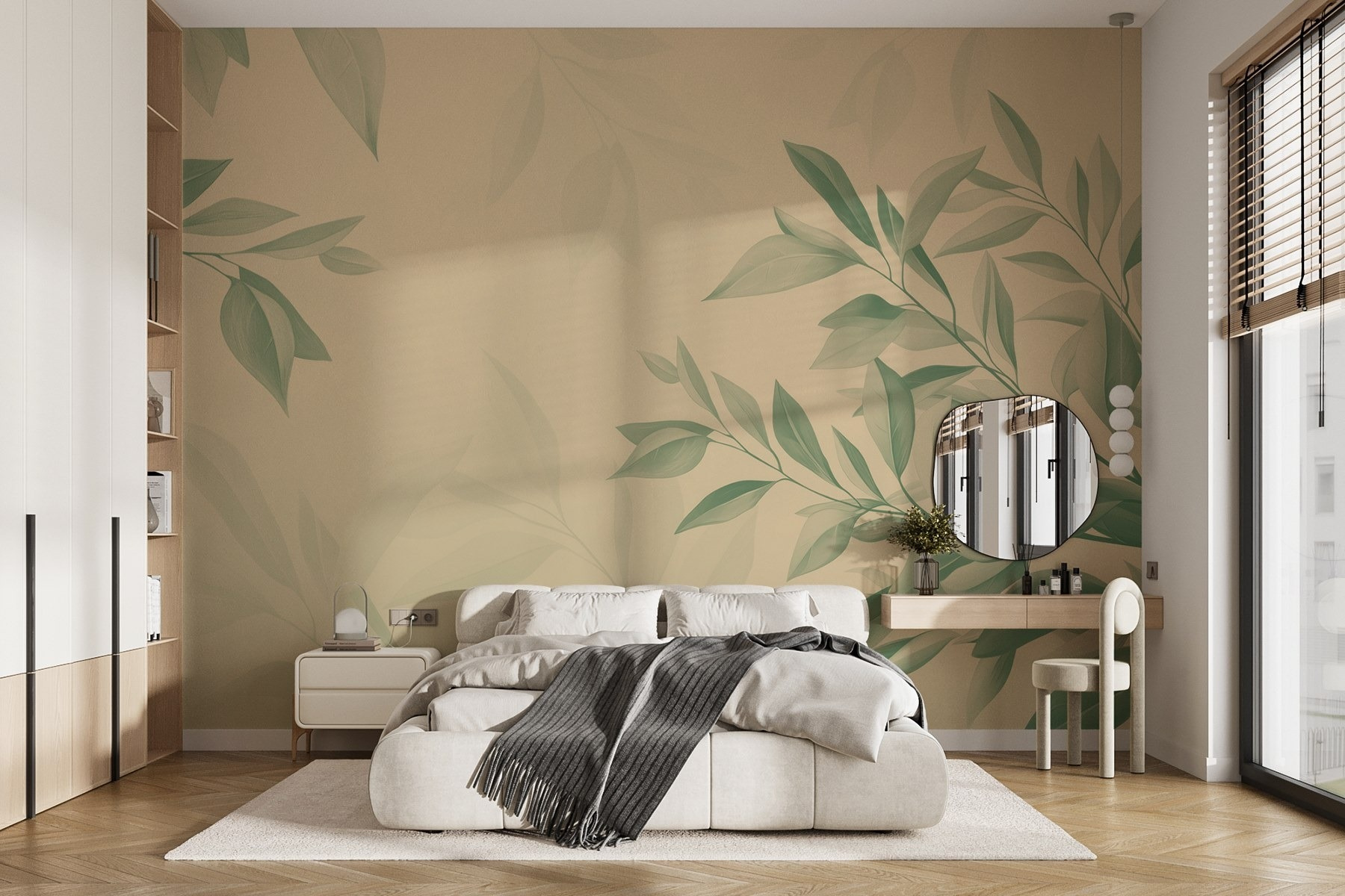 Trasformate qualsiasi stanza con questo splendido murale con foglie verdi su uno sfondo neutro. Immaginate di svegliarvi con la dolce brezza della natura proprio a casa vostra, senza bisogno di scarponi da trekking! L’importante è creare un’atmosfera serena. Questo murales sussurra calma, rendendolo perfetto per spazi abitativi accoglienti o per un angolo di lettura tranquillo. Le tonalità tenui si abbinano perfettamente a una vasta gamma di colori, quindi è come avere un amico flessibile nel proprio arsenale di arredamento. Davvero, non sarebbe ancora meglio raggomitolarsi con un buon libro? Abbracciate il fascino botanico e sentitevi ringiovaniti ogni giorno!