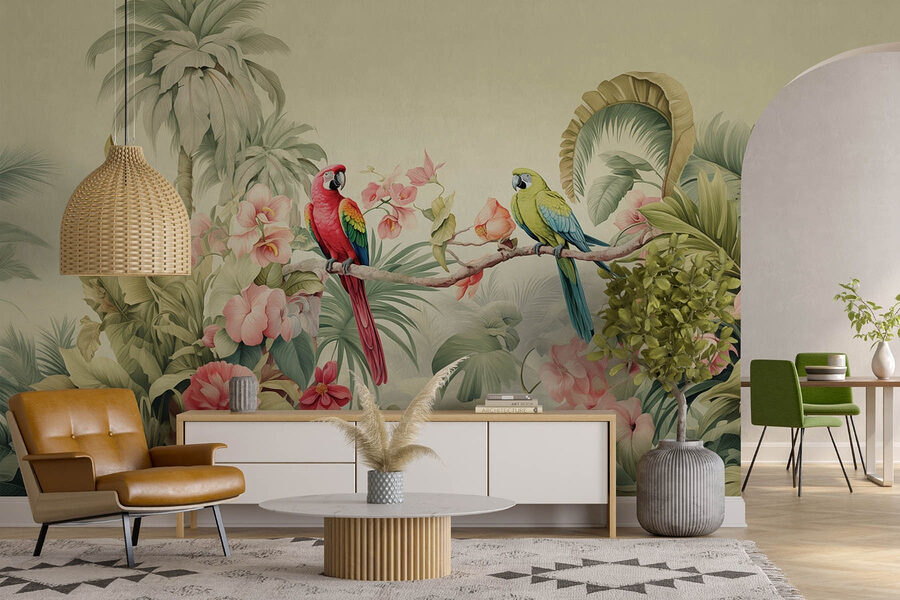 Trasformate il vostro spazio con questo vivace murale che raffigura un’affascinante coppia di pappagalli appollaiati con grazia su un ramo. Questi amici piumati portano un tocco di paradiso tropicale in casa vostra. Le rigogliose fioriture e le foglie creano un’atmosfera serena, rendendola perfetta per un accogliente angolo lettura o un vivace salotto. Immaginate di sorseggiare il vostro caffè mattutino circondati da questa esplosione di colori: è come essere in perenne vacanza! Inoltre, le vibrazioni giocose dei pappagalli potrebbero anche ispirare qualche conversazione sfrontata. Abbracciate la bellezza della natura e lasciate che le vostre pareti raccontino una storia!