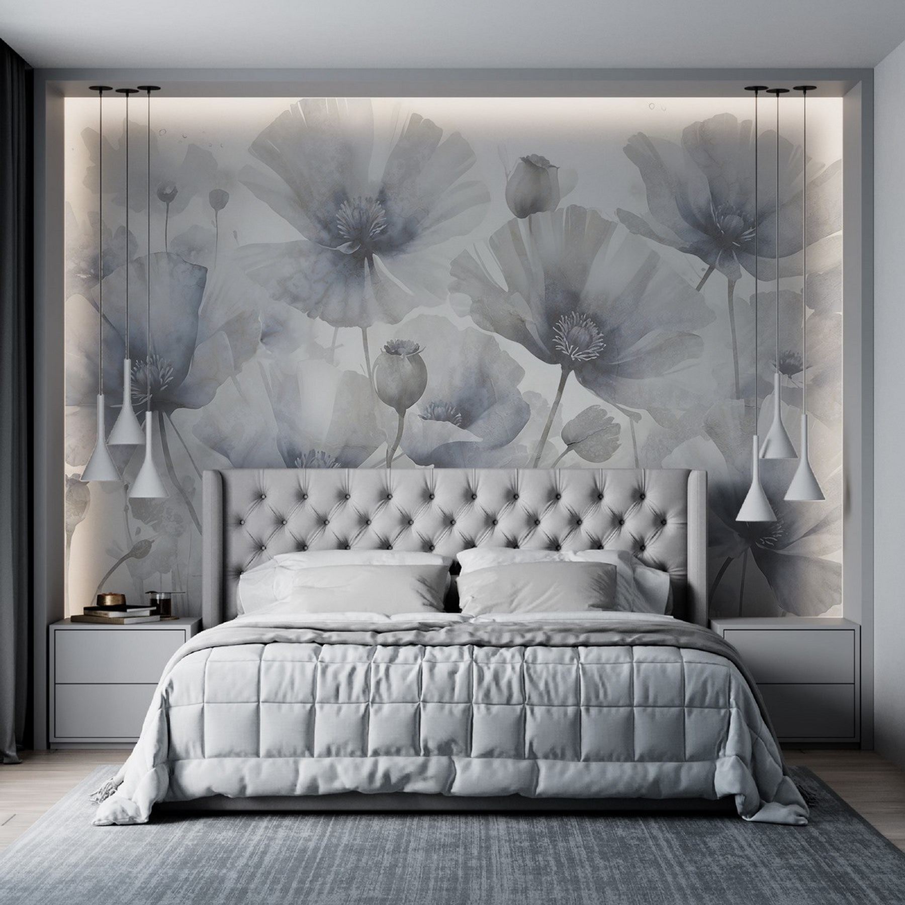 Trasformate qualsiasi spazio con questo splendido murale con un gruppo di fiori da sogno su uno sfondo bianco. È come se la primavera arrivasse in casa vostra, anche in pieno inverno. Le morbide pennellate ad acquerello creano un senso di calma, inducendo a respirare profondamente e a sognare ad occhi aperti le passeggiate in giardino. Immaginatevi mattinate accoglienti sorseggiando un tè, dove i fiori sembrano sbocciare proprio sulla vostra parete, invitando calore e luce. Con la sua sottile eleganza, questo murale aggiunge un tocco di bellezza della natura, sussurrando dolci note al vostro arredamento. Chi non lo vorrebbe?