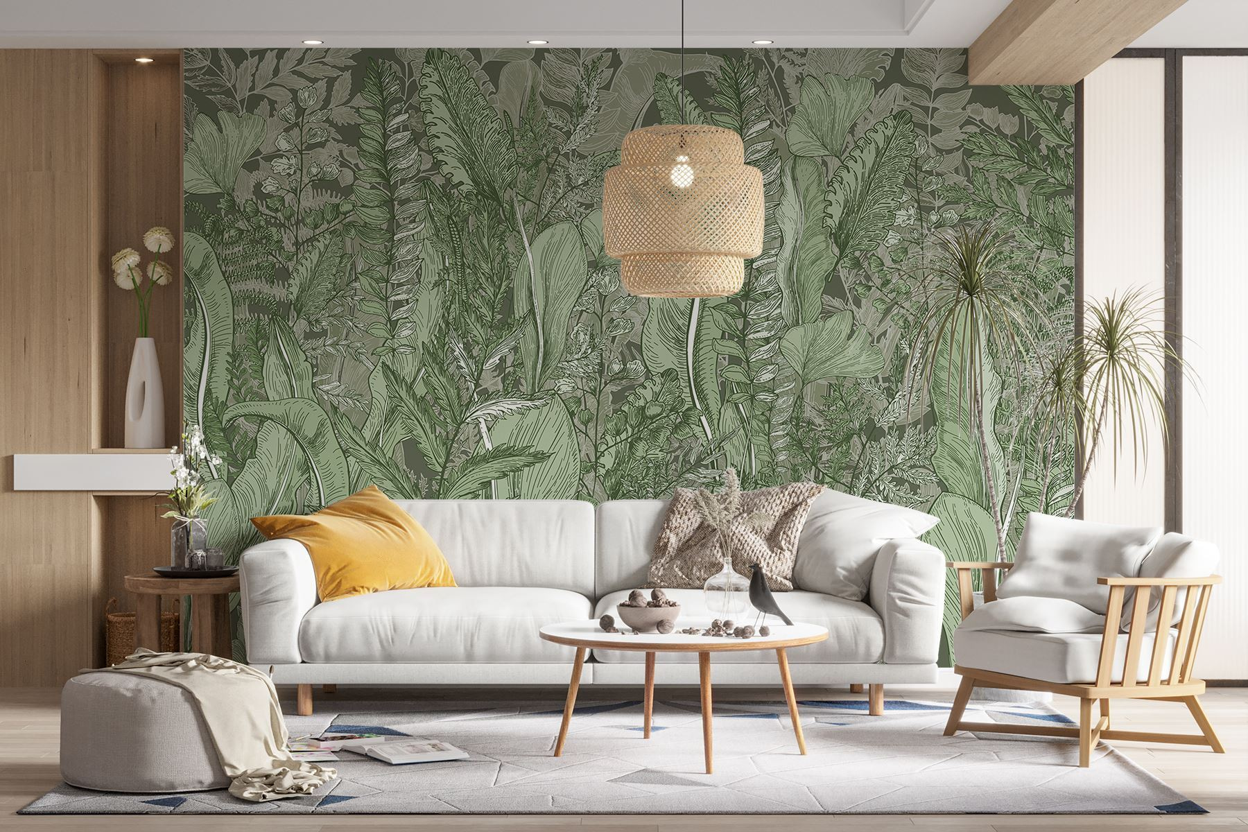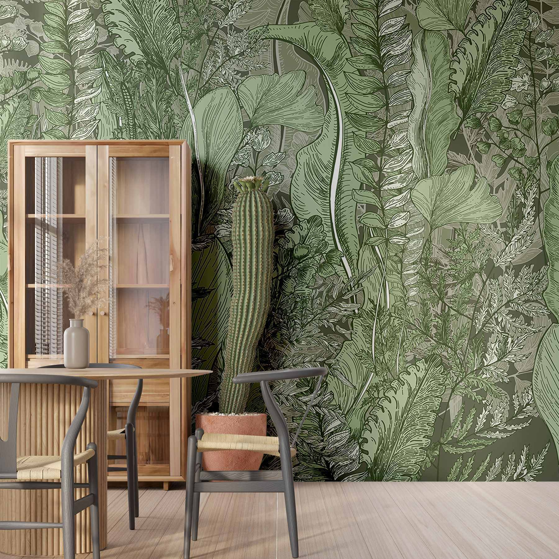 Trasformate qualsiasi spazio in un’oasi serena con il murale “Lush Greenery”. È come passeggiare in una foresta vibrante senza uscire dalla stanza! Ricca di foglie intricate e felci delicate, quest’opera d’arte invita a un tocco di natura in casa. Immaginate di accoccolarvi con un buon libro, circondati da questo verde rilassante, perfetto per sognare ad occhi aperti o per rilassarsi dopo una lunga giornata. Inoltre, è una soluzione chic per chi ha difficoltà a mantenere in vita le piante d’appartamento (senza giudicare!). Lasciate che i toni rilassanti diano vita alle vostre pareti e migliorino il vostro arredamento senza sforzo.