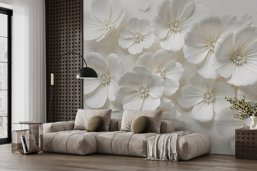 Questi eleganti fiori aggiungono un tocco di bellezza naturale, perfetto per un salotto o un accogliente angolo di lettura. Immaginate di accoccolarvi con un libro, con i petali bianchi e morbidi che creano uno sfondo di gioia e tranquillità. Non è solo arredamento, è un’atmosfera! Che stiate sorseggiando un tè o sognando ad occhi aperti, questo murale è un affascinante promemoria delle possibilità di fioritura. Lasciate che le vostre pareti fioriscano!