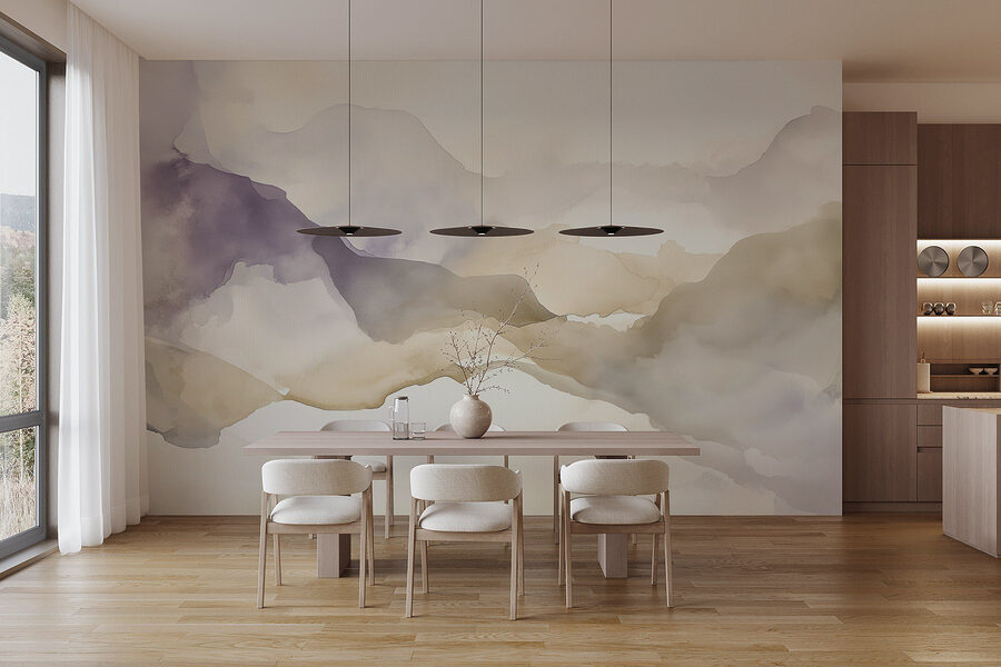 Trasformate qualsiasi spazio con questo splendido acquerello murale di montagne. È come portare un pezzo di natura serena a casa vostra, senza gli scarponi da trekking. Le tonalità tenui si fondono magnificamente, creando uno sfondo da sogno, invitante e tranquillo, perfetto per le serate accoglienti o per un tranquillo caffè mattutino.