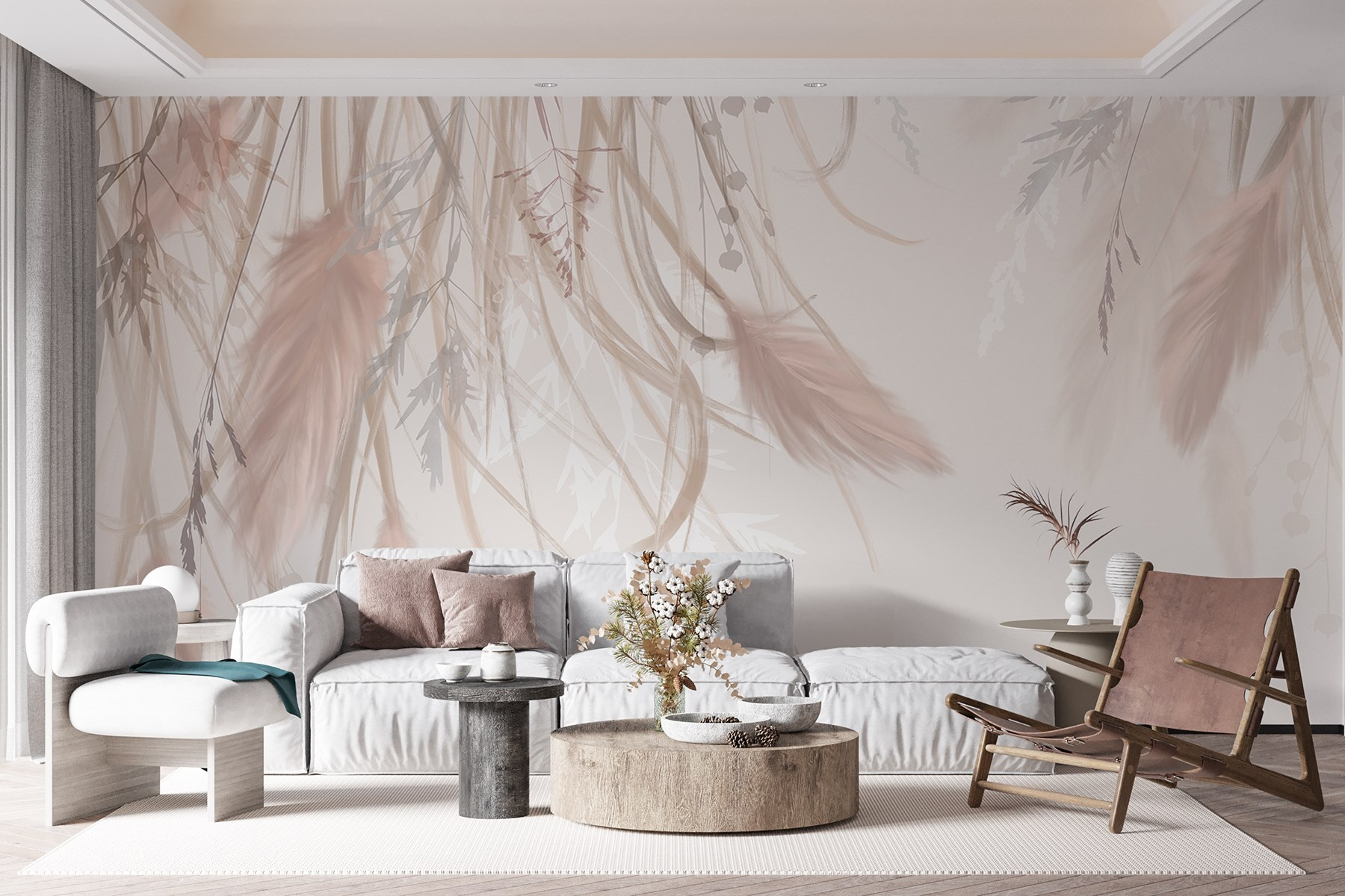 Guardate esattamente come apparirà il vostro spazio con la nuova carta da parati prima di acquistarla. Visualizzazione professionale da parte di designer esperti senza alcun costo o obbligo di acquisto.