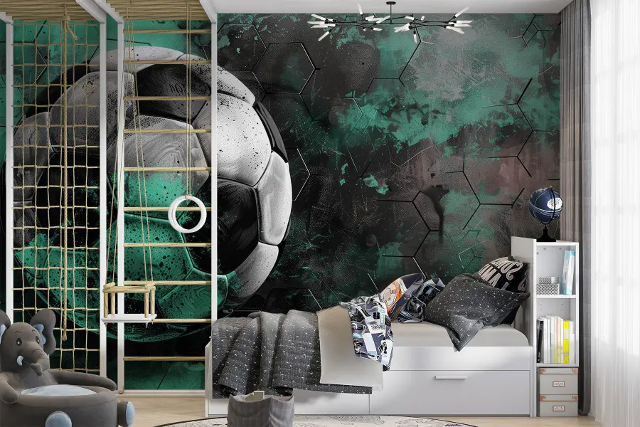 Trasformate il vostro spazio con questo splendido murale con un pallone da calcio spruzzato su un vivace sfondo verde e nero. È come portare il brivido della partita nel vostro salotto, senza i tacchetti sul tappeto! I colori vivaci e il design dinamico potrebbero facilmente scatenare dibattiti amichevoli su chi sia il miglior giocatore, senza dimenticare i popcorn per i momenti della partita. Perfetto per gli amanti dello sport o per chiunque voglia aggiungere un tocco giocoso al proprio arredamento, questo murale incoraggia conversazioni vivaci e forse anche un po’ di sogni ad occhi aperti su quel gol perfetto. Che si tratti di una sala giochi, della stanza di un bambino o persino dell’ufficio, questo murale è destinato a risollevare gli animi e a rendere vive le pareti! Chi avrebbe mai detto che il calcio potesse essere così elegante?