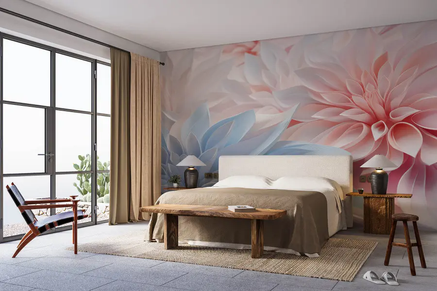 Trasformate il vostro spazio con questo delizioso murale con una splendida composizione di fiori di carta pastello. Immaginate la boccata d’aria fresca che porta con sé: ogni fiore nei toni del rosa e del blu è come un dolce abbraccio di primavera. Perfetto per un angolo accogliente o un soggiorno vivace, è come invitare un giardino all’interno senza la preoccupazione di annaffiare.
