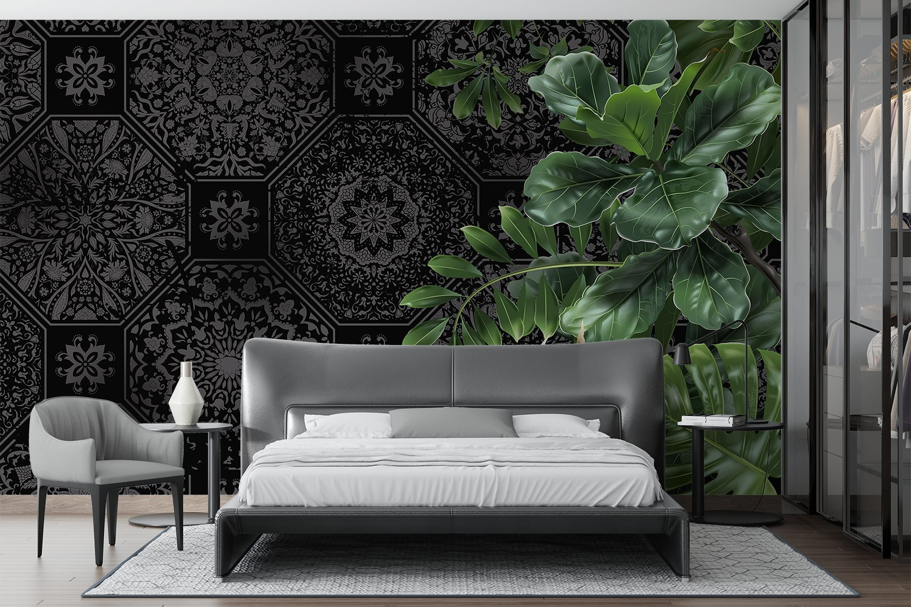 Trasformate il vostro spazio con questa splendida carta da parati nera e grigia con foglie verdi e rigogliose. Immaginate di entrare in una stanza che sembra un’evasione tropicale! Gli intricati motivi geometrici offrono uno sfondo fantastico, mentre le foglie vivaci danno un tocco di vita e di energia. Vi sentirete come circondati dalla natura, ovviamente senza zanzare! Perfetto per un accogliente angolo lettura o per una parete d’effetto, questo murale fonde senza sforzo l’eleganza con un tocco selvaggio. Pronti per un po’ di stile? Le vostre pareti vi ringrazieranno!