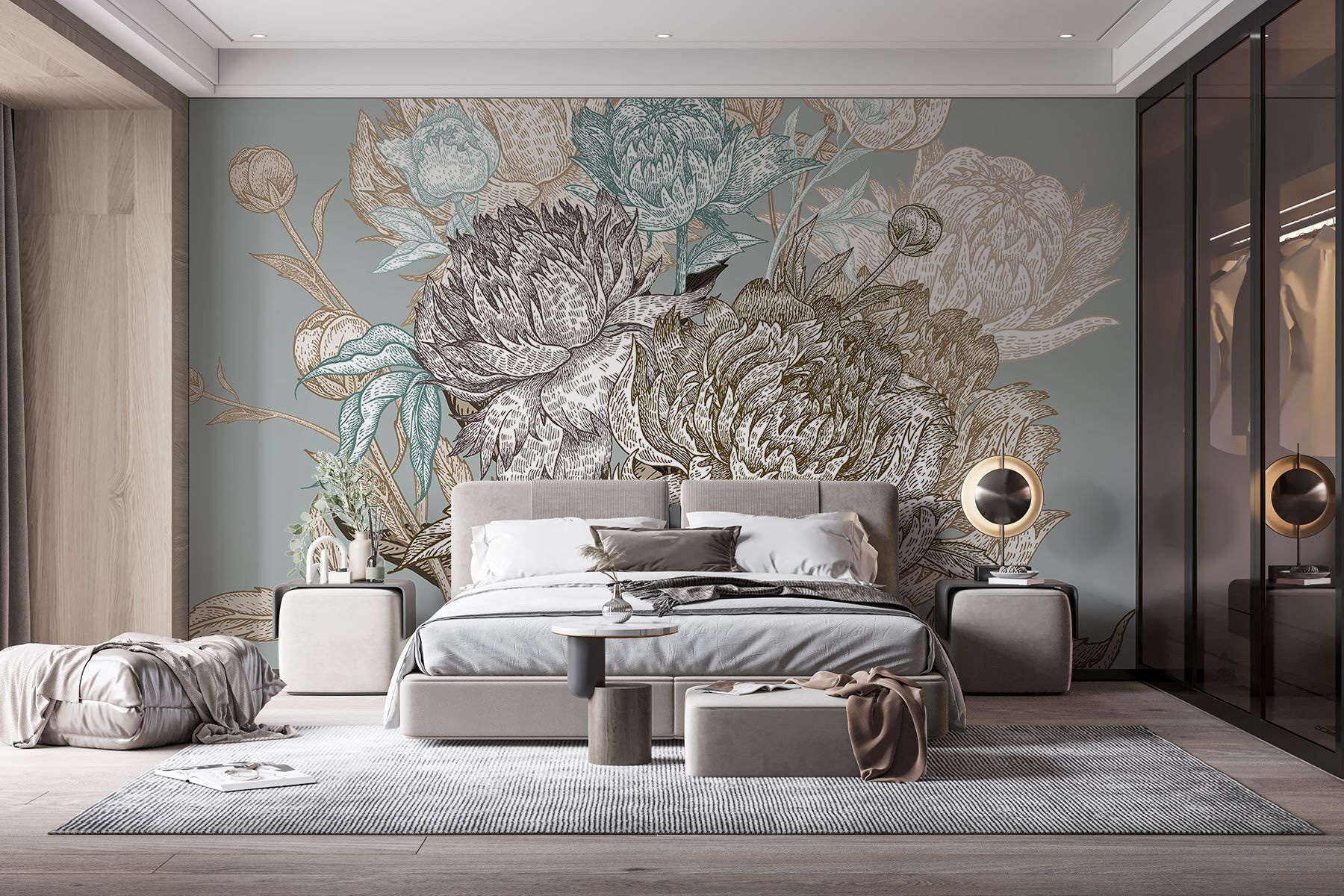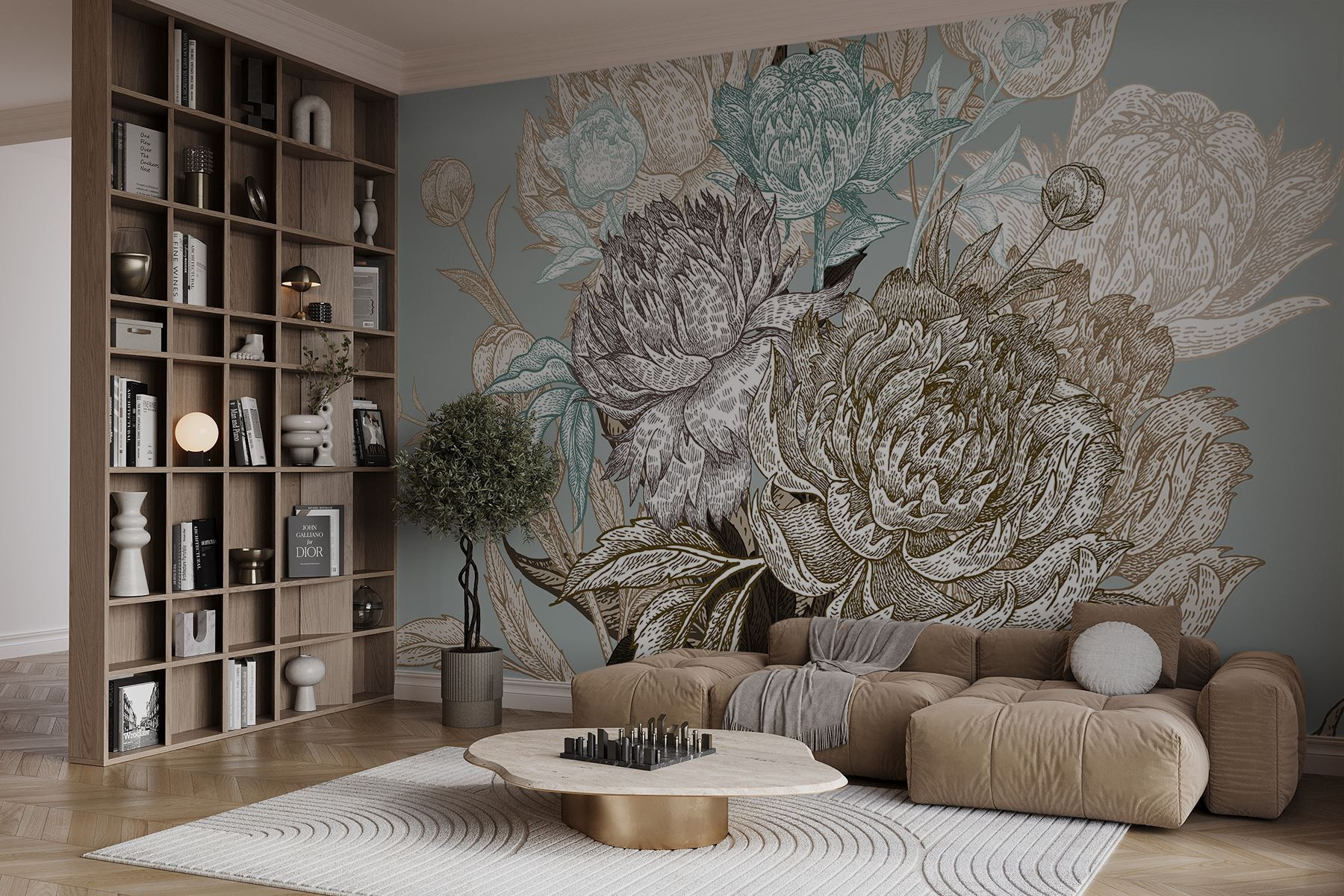 Trasformate una parete spenta in un’accogliente oasi da giardino con questo splendido murale floreale! Caratterizzato da tonalità morbide e delicate, invita a un’atmosfera serena che potrebbe farvi dimenticare di essere in casa. Immaginate di sprofondare nella vostra poltrona preferita, con una tazza di tè in mano, circondati da eleganti peonie e delicate fioriture: chi avrebbe mai detto che i fiori potessero portare tanta pace? Questo design sussurra una bellezza senza tempo, che si fonde senza sforzo con qualsiasi stile di arredamento. Perfetto per chi sogna un angolo incantato, è come avere un giardino segreto a casa. È già primavera?
