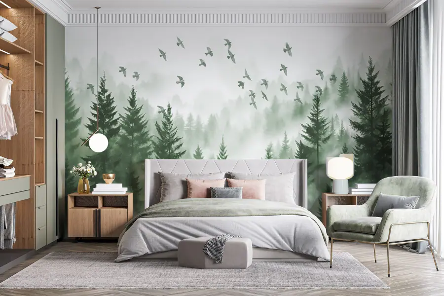 Trasformate qualsiasi spazio con l’incantevole murale “Uccelli in volo su una foresta”. Immaginate di svegliarvi ogni giorno in una serena foresta nebbiosa, dove ogni dettaglio sussurra pace. Questi graziosi uccelli che si librano in volo aggiungeranno un tocco di magia e libertà alle vostre pareti. È perfetto per stanze accoglienti o salotti vivaci, ovunque serva un pizzico di fascino della natura. Inoltre, chi non vorrebbe sentirsi in un rifugio da sogno nel bosco ogni volta che entra? Facile da applicare e di sicuro effetto, questo murale dal verde tenue e dall’atmosfera rilassante potrebbe farvi dimenticare il mondo esterno. Ideale per chi sogna ad occhi aperti e per gli amanti della natura!