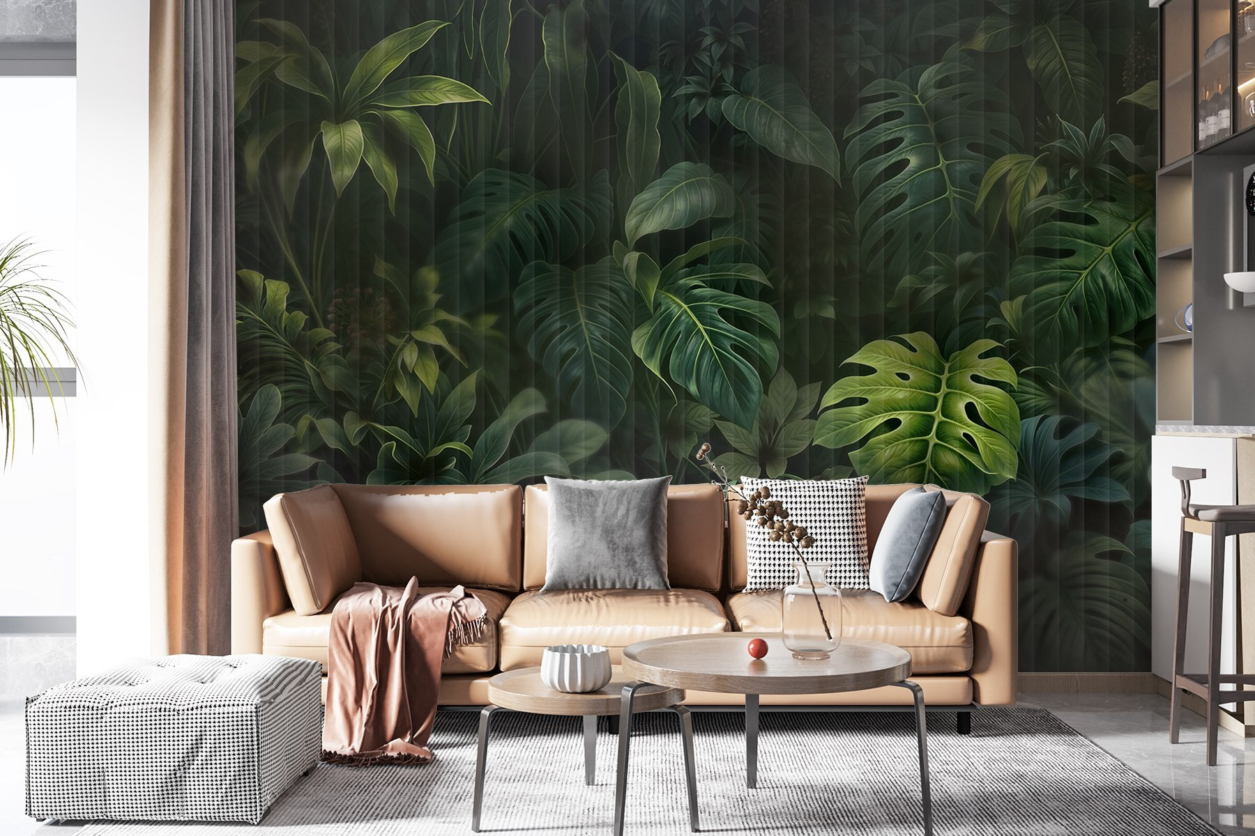 Guardate esattamente come apparirà il vostro spazio con la nuova carta da parati prima di acquistarla. Visualizzazione professionale da parte di designer esperti senza alcun costo o obbligo di acquisto.