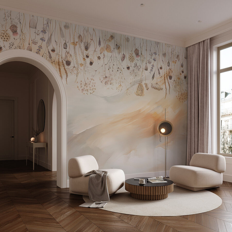 Trasformate il vostro spazio con questo incantevole murale di fiori e piante secche, dove l’arte incontra la tranquillità. Immaginate di entrare ogni giorno in un rifugio sereno; i toni morbidi dell’acquerello si riversano sulle vostre pareti, creando uno sfondo pacifico che sussurra la bellezza della natura. Perfetto per un accogliente angolo di lettura o per uno spazio di lavoro stimolante, questo murale invita a sognare ad occhi aperti e a conversare con dolcezza. È come avere un giardino segreto proprio dentro casa, con fiori che non appassiscono mai. Immaginate di rannicchiarvi con una tazza di tè, immergendovi in queste vibrazioni rilassanti… fantastico, vero? Lasciate che questo murales intrecci la sua magia nella vostra vita.