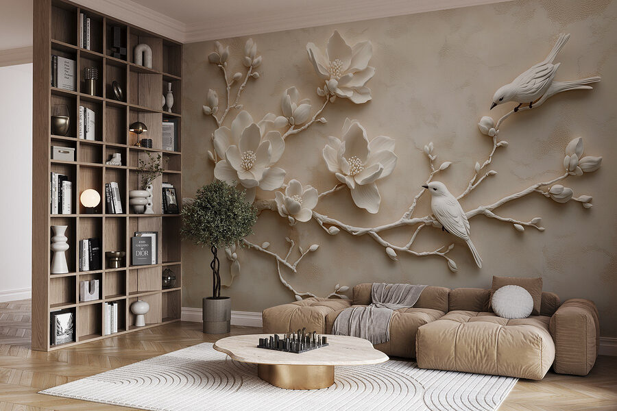 Immaginate di entrare in una stanza dove la natura sussurra dolcemente attraverso le pareti. Questo murale, con i suoi delicati uccelli bianchi appollaiati su un ramo fluente ornato di fiori, fa proprio questo. La sottile eleganza dei fiori invita a un senso di pace, perfetto per un accogliente angolo lettura o una camera da letto serena. È come portare un tocco di primavera in casa, senza allergie! C’è qualcosa di stravagante nel modo in cui gli uccellini sembrano cinguettare segreti l’uno con l’altro. Sentite la calma che vi pervade quando questo murale trasforma il vostro spazio in una fuga da sogno. Perfetto per chi apprezza la bellezza della natura senza doverne curare la manutenzione. Una soluzione vincente per tutti!