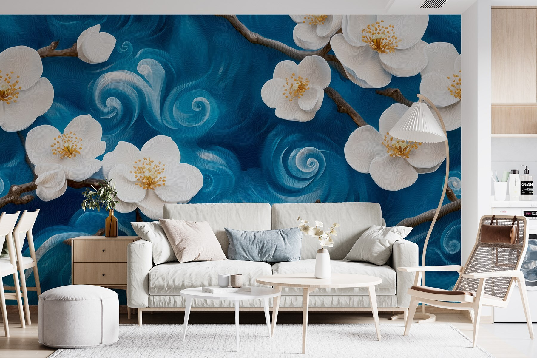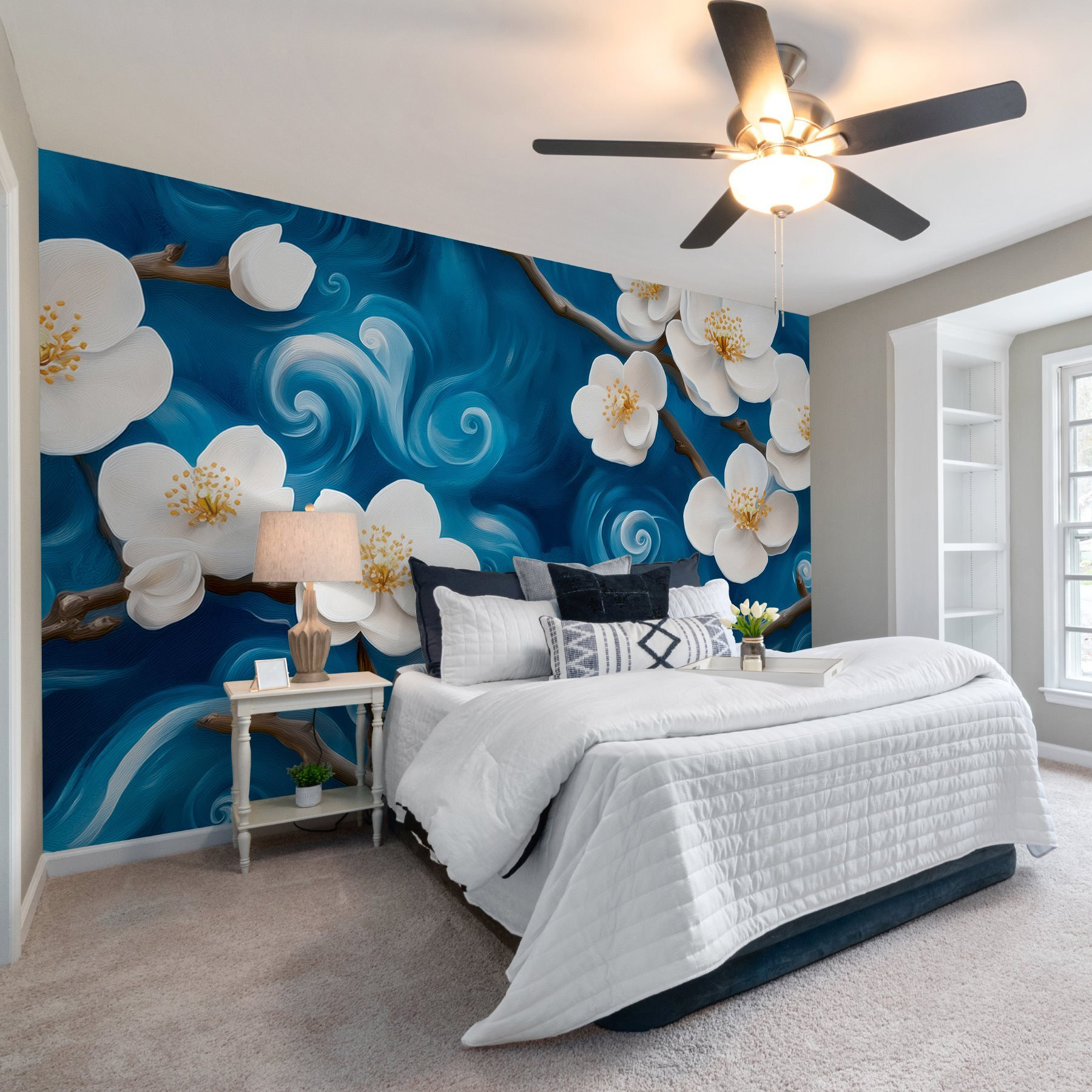 Immagina di entrare nella tua stanza e di essere accolto da delicati fiori che danzano su uno sfondo vorticoso: sembra un sogno, vero? Questo murale, “Delicati fiori su uno sfondo vorticoso”, porta il fascino di un giardino giapponese direttamente nel tuo spazio. Il contrasto sorprendente tra i morbidi petali bianchi e i vortici blu intenso crea un’atmosfera serena ma dinamica. È come fare una mini vacanza ogni volta che entri! Perfetto per quei momenti in cui il caos del mondo si insinua nella tua vita. Immagina di sederti sulla tua poltrona preferita con una tazza di tè in mano. Con questo murale è facile dimenticare il trambusto esterno e perdersi nella sua bellezza. È anche un ottimo spunto di conversazione: chi non vorrebbe parlare di uno sfondo così straordinario? Trasforma le tue pareti in un rifugio tranquillo!