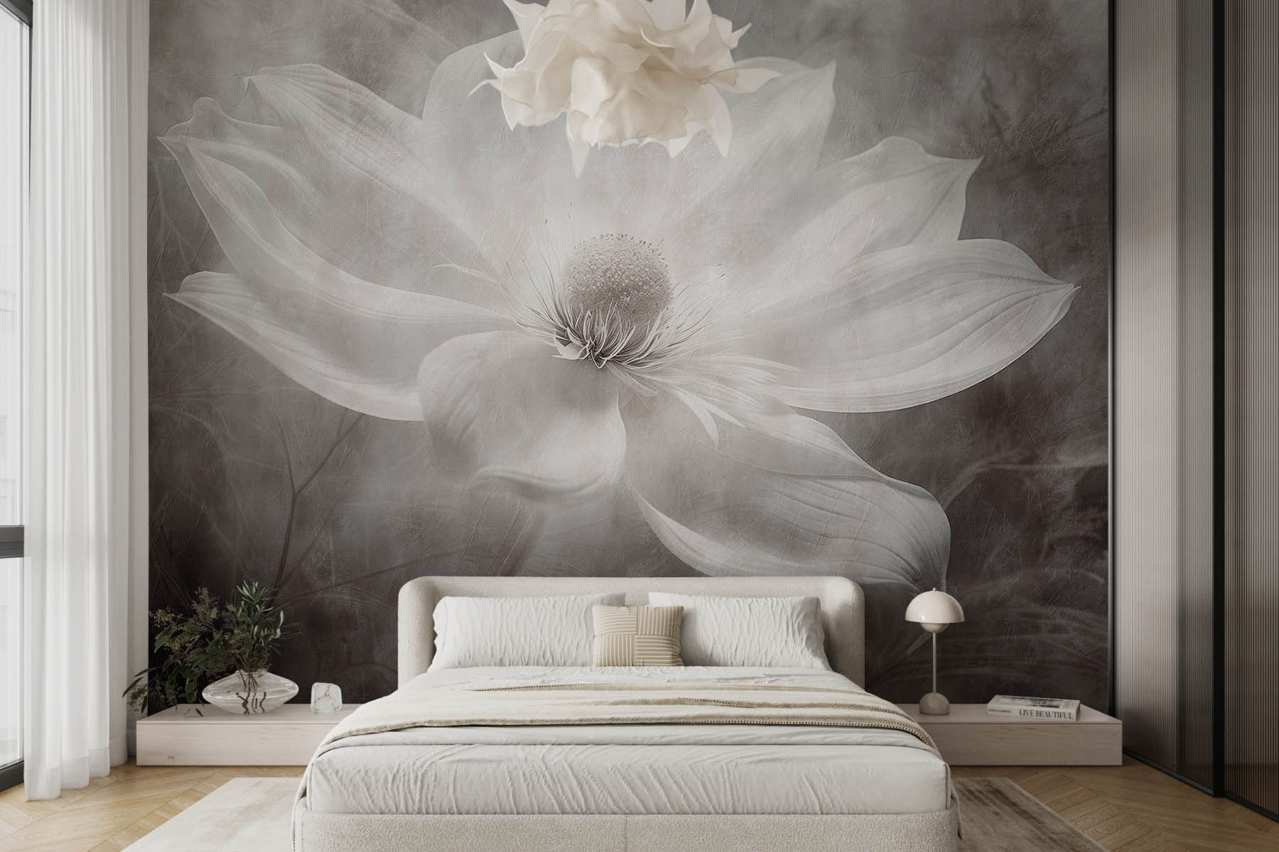 Trasforma il tuo spazio con il “Murale floreale bianco con centro nero”. Immagina questo: un fiore sereno che sussurra eleganza pur mantenendo un forte impatto. È come la versione floreale di un elegante tubino nero, perfetto per ogni occasione. Le tonalità tenui e il centro sorprendente aggiungono un tocco di drammaticità senza sovrastare l’atmosfera. Immagina di entrare in una stanza dove questa bellezza ti accoglie, sollevando immediatamente il tuo umore, quasi come avere un animale domestico amichevole che se ne sta lì seduto a guardarti con dolcezza. I petali delicati invitano alla calma, perfetti per rilassarsi dopo una lunga giornata. Lascia che questo murale sia l’elemento accattivante che delizia ogni visitatore, perché, siamo onesti, a chi non piace avere un ottimo spunto di conversazione?