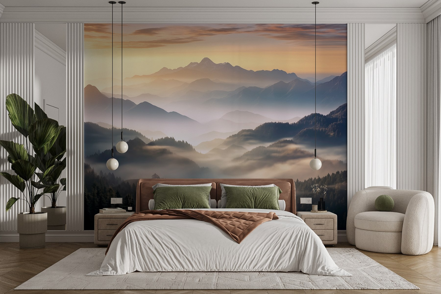 Transform any room into a serene escape with this stunning wall mural of mountains shrouded in enchanting fog. Picture this: waking up and being greeted by a breathtaking view that feels like stepping into a dreamy landscape. The delicate interplay of misty greens and blues can soothe the soul, making it perfect for a peaceful reading nook or a cozy bedroom. Imagine sipping coffee while gazing at those distant peaks, feeling the stress of the day melt away. It’s like bringing a slice of nature indoors—no hiking boots required! With its calming vibes, this mural invites a gentle, refreshing energy that’ll make everyone feel right at home. Plus, it’s a fabulous conversation starter. Who wouldn’t want to chat about the “best” mountain-view they’ve ever seen?