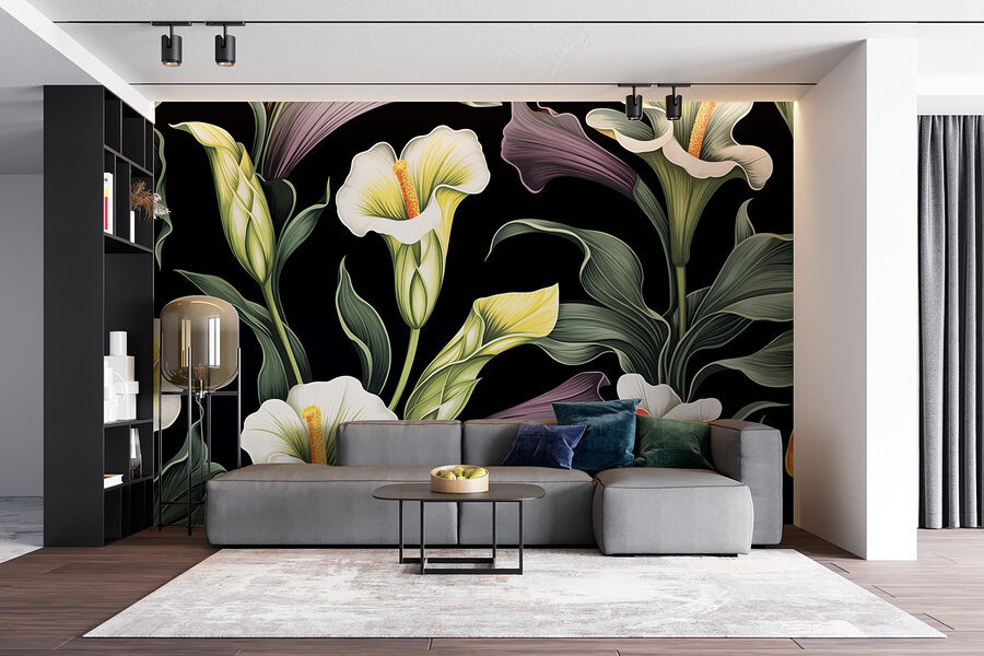 Vuoi aggiungere un tocco di colore al tuo spazio? Questo vivace murale floreale è quello che fa per te! Su uno sfondo scuro e drammatico, queste bellezze in fiore sembrano quasi danzare sulla parete. Immagina di entrare in una stanza dove ogni sguardo ti dà la sensazione di trovarti in un giardino rigoglioso, senza l’annaffiatoio e le fastidiose api, per fortuna. È come il sorriso della natura, che porta calore e allegria anche nei giorni più cupi. Perfetto per un angolo lettura accogliente o per quella parete che ha solo bisogno di un po’ d’amore, è un allegro spunto di conversazione. Chi non si sentirebbe un po’ più felice circondato da fiori così vivaci? Inoltre, è un’ottima scusa per più appuntamenti al bar: “Oh, possiamo sederci vicino alla parete floreale? È così bella!” Chi avrebbe mai detto che l’arredamento potesse incoraggiare l’amicizia? 🌼