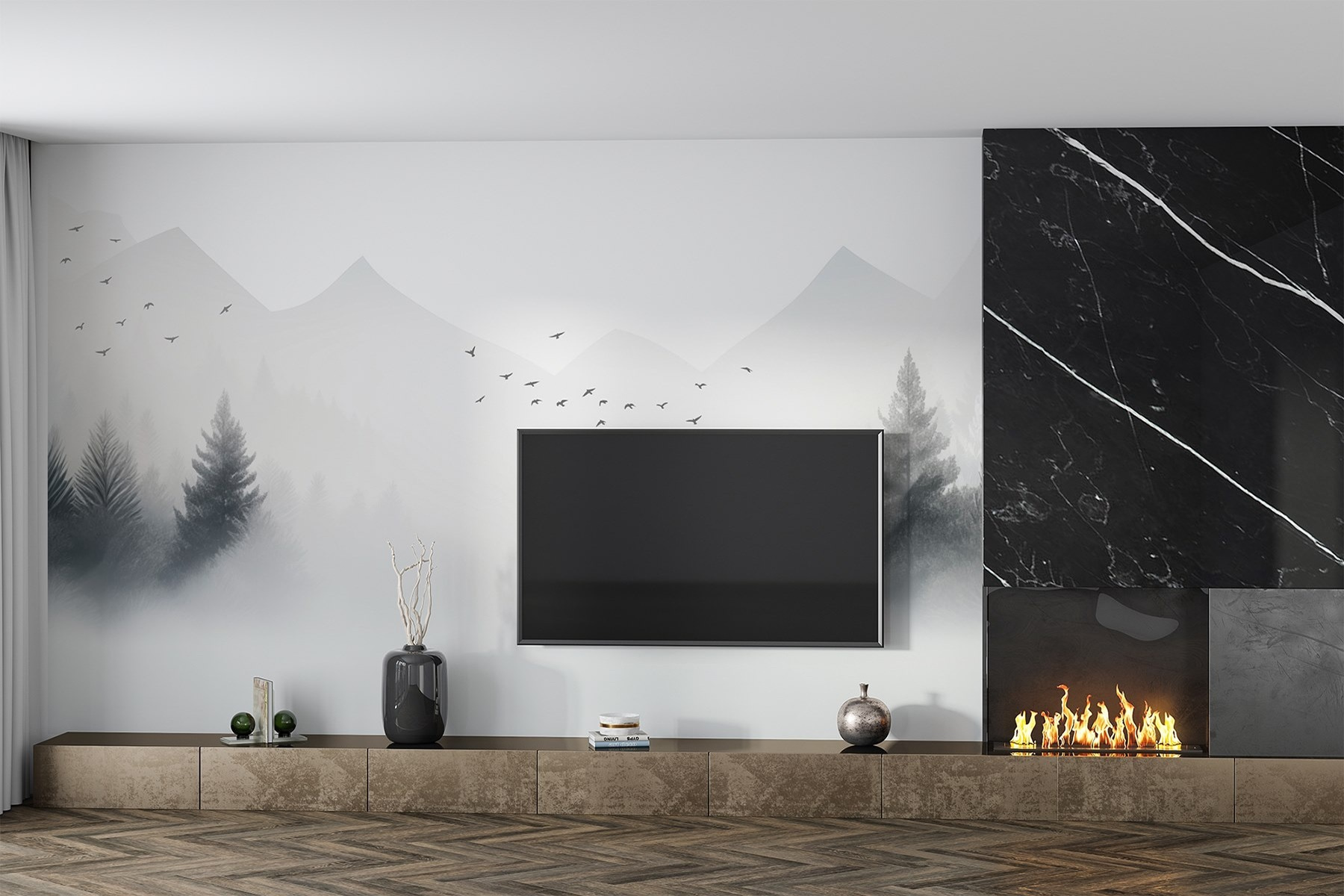 Imagine stepping into a cozy room adorned with “Birds Flying Over a Foggy Forest.” This mural whispers tranquility, inviting a hint of nature right into your space. Picture those serene mornings, sunlight just peeking through, as soft fog blankets the trees—truly dreamy! Each bird in flight adds a touch of freedom, like they’re encouraging you to spread your wings too. Whether it’s a living room or a quiet reading nook, this mural can transform the vibe and spark daydreams of forest trails and mountain escapes. The gentle colors soothe the eyes, making it impossible not to feel a tiny bit more relaxed every day. It’s like having a peaceful getaway on your wall!