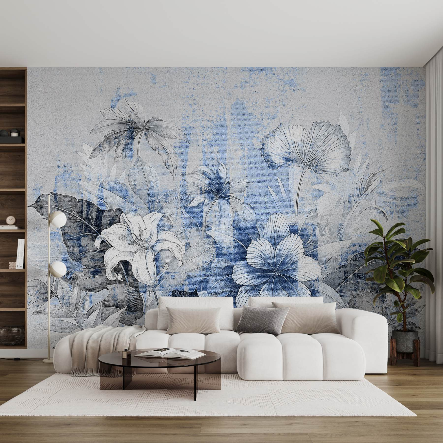 Transform any space into a calming oasis with the “Serene Floral Composition in Blue Tones.” Imagine stepping into a room where soft blues and delicate floral designs wrap around you like a gentle hug—pure bliss! This mural doesn’t just hang on the wall; it breathes life into your space, inviting light and tranquility. Picture sipping coffee on a sunny morning, with these watercolor blooms brightening your day. An effortless way to add personality to a room, it’s like having a garden that never wilts, all while keeping the fuss of actual gardening at bay. Who needs a green thumb, right?