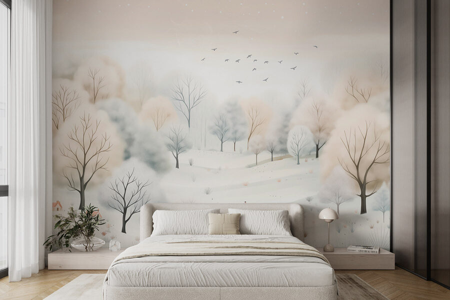 Trasforma qualsiasi stanza in un accogliente paradiso invernale con questo splendido murale “Paesaggio innevato con alberi e uccelli”. Immagina una leggera nevicata, con alberi ghiacciati che ondeggiano dolcemente mentre gli uccelli volano sopra di essi. È come portare la calma della natura direttamente nel tuo spazio abitativo: niente aria fredda, solo pura serenità. I toni neutri creano un’atmosfera tranquilla che può rallegrare anche le giornate più cupe. Che si tratti di un angolo lettura tranquillo o di un vivace salotto, questo murale crea l’atmosfera giusta. Immagina di sorseggiare una cioccolata calda avvolto in una calda coperta, contemplando questa scena serena: è un assaggio della magia dell’inverno, senza il freddo!