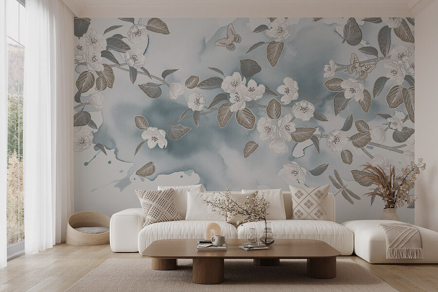Trasformate qualsiasi stanza con questo splendido murale con fiori e foglie bianche che danzano su un sereno sfondo blu. Immaginate di svegliarvi con questa bellezza delicata: è come se la primavera si fosse posata proprio sulle vostre pareti. L’effetto acquerello aggiunge un’atmosfera morbida e sognante che può illuminare anche le giornate più cupe. Che sia in un accogliente soggiorno o in una tranquilla camera da letto, questo murale invita alla pace e alla tranquillità. Perfetto per chi adora la natura ma magari dimentica di annaffiare le piante. È una piccola fuga a casa, che fa sentire ogni momento un po’ più speciale. Un tocco perfetto, no?