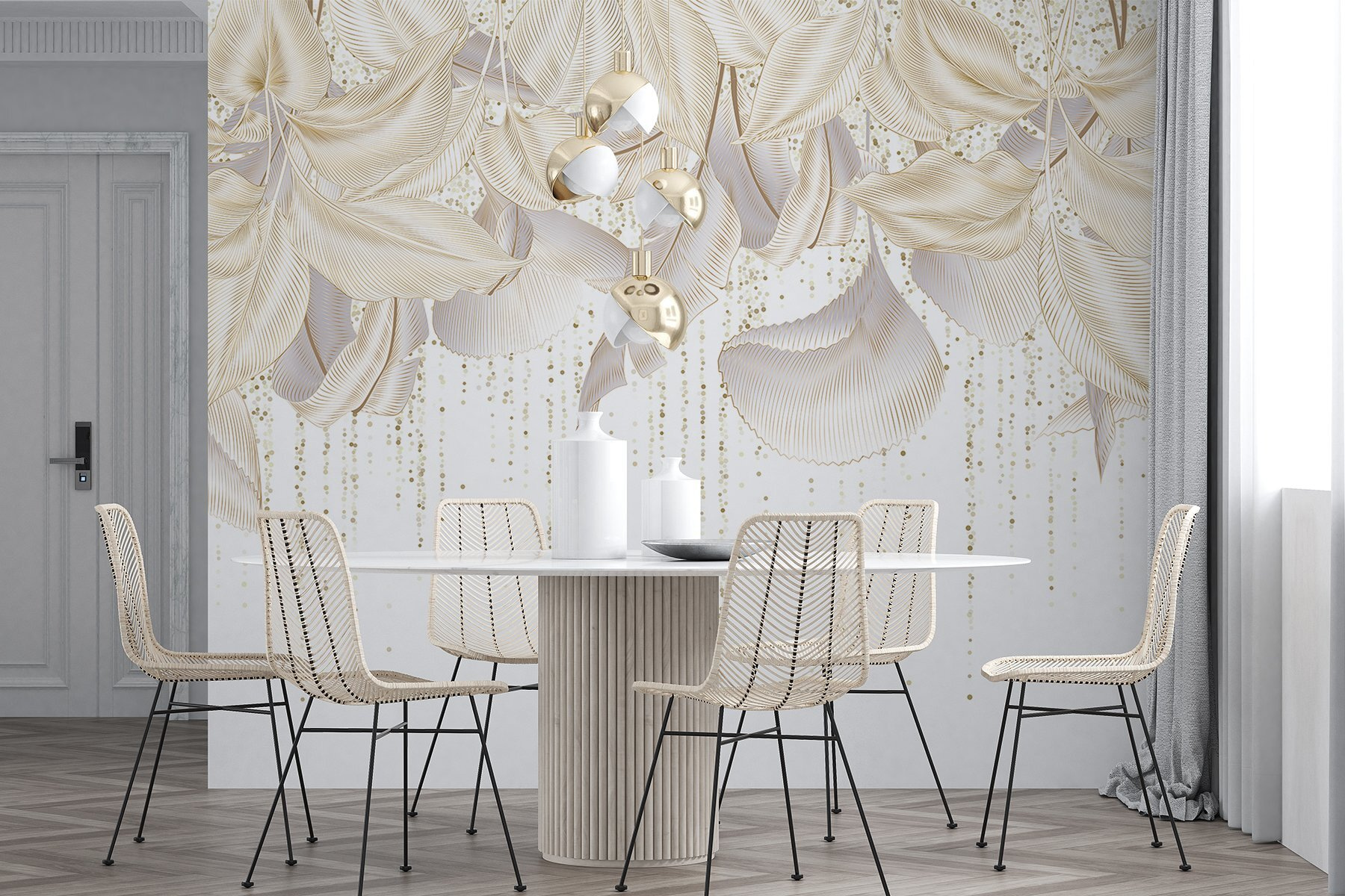 Trasformate il vostro spazio con l’incantevole murale “Delicate Leaves in Soft Arrangements”. È come portare in casa un giardino ventilato, dove ogni sguardo sembra una fuga serena. La palette di colori tenui danza dolcemente, ricordando una calda giornata di primavera. Immaginate di sorseggiare un caffè ammirando questo sfondo tranquillo, perfetto per i pomeriggi pigri o per le sessioni di brainstorming creativo. Perfetto per qualsiasi ambiente, aggiunge un tocco rinfrescante che sussurra eleganza. Potreste persino dimenticarvi di essere all’interno: che bisogno c’è di una finestra quando c’è questa delizia di foglie? Lasciate che le vostre pareti raccontino una storia di calma e bellezza.