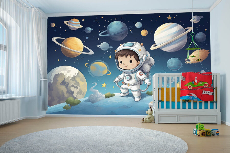 Carta da parati Cartone animato di un ragazzo in tuta spaziale (SKU: w08838)