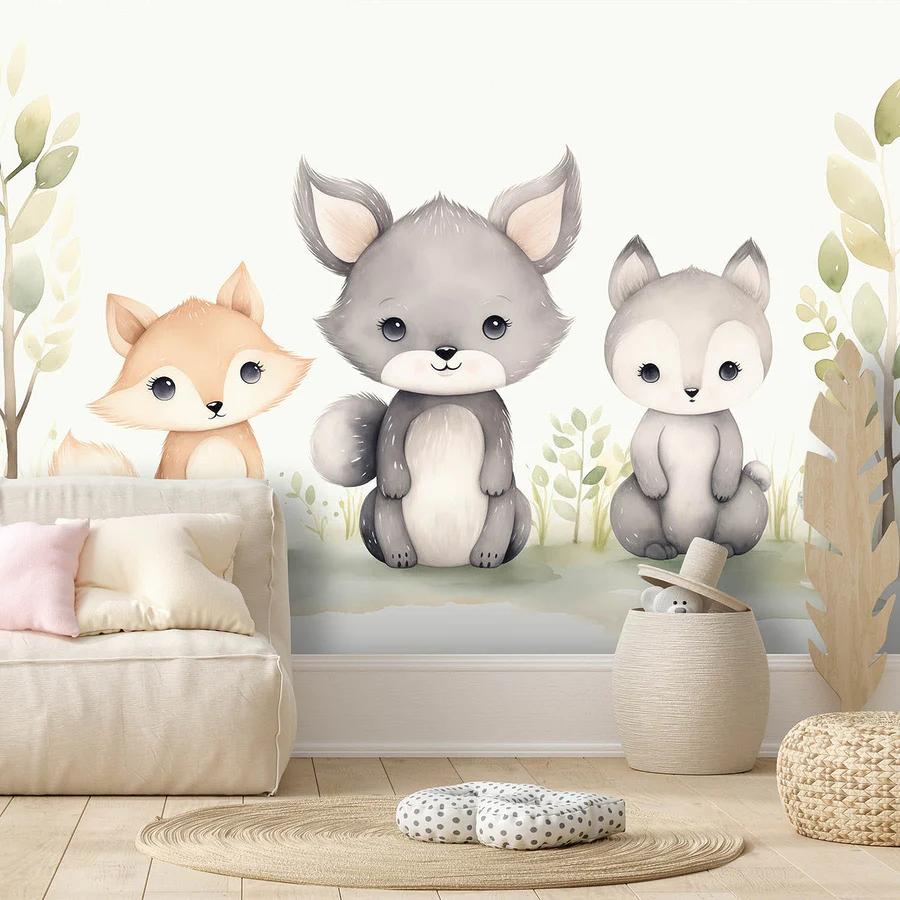 Add a sprinkle of enchantment to any room with this delightful wall mural of adorable animals lounging on lush grass. Just picture a curious little fox, a cuddly wolf, and a sweet little pup hanging out together. It’s like a cozy woodland critter meeting that could make even the grumpiest grown-up crack a smile. Perfect for kids’ rooms or play areas, this charming mural brings a soft touch of nature indoors. Every time someone walks by, it’s sure to spark joy and maybe even a chuckle or two—because who wouldn’t love a trio of furry friends as their wall buddies? Your walls might just become the most popular spot in the house!