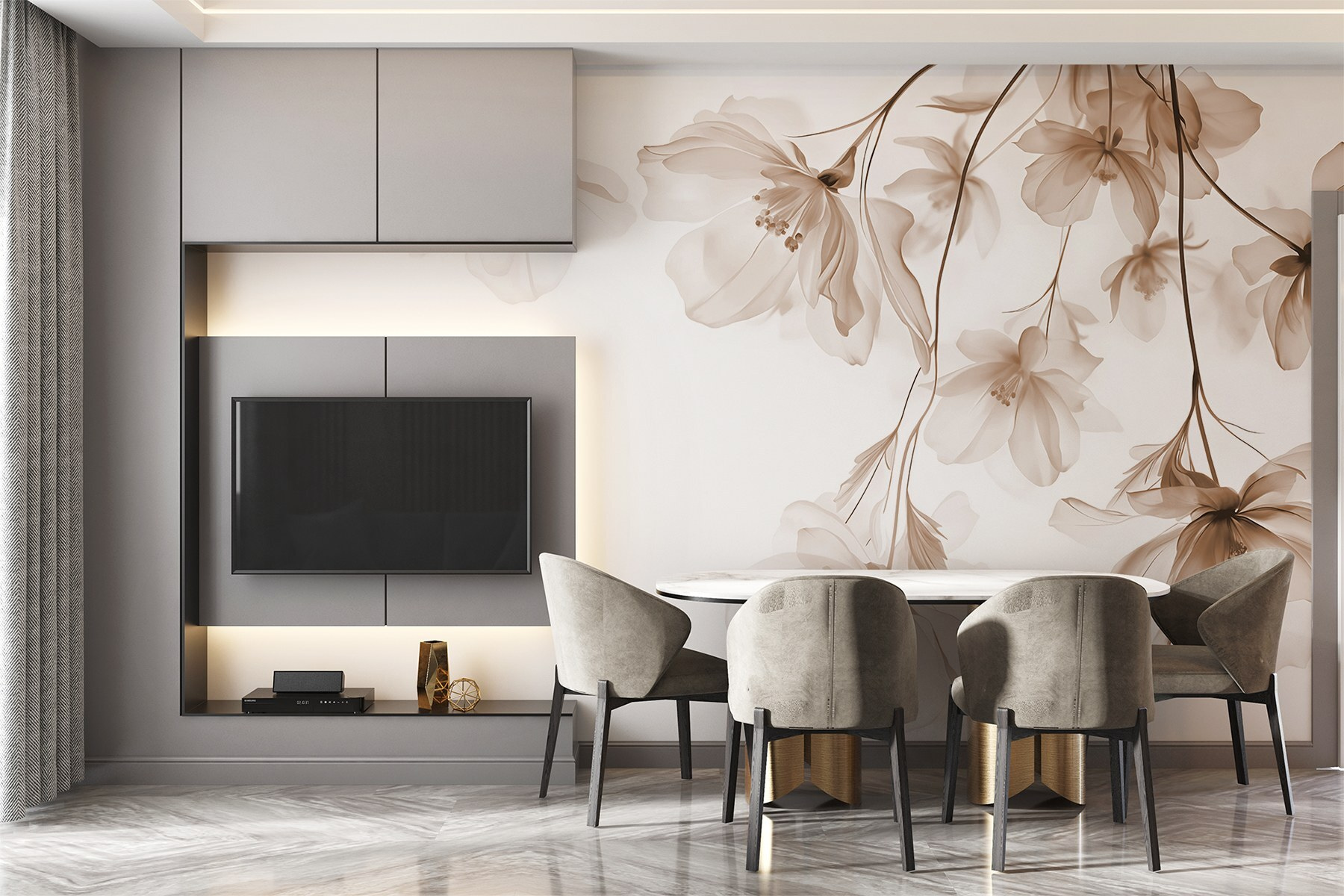 Trasformate qualsiasi spazio con questo splendido murale caratterizzato da delicate fioriture in tonalità tenui. Immaginate di entrare in un giardino sereno direttamente dal vostro salotto: ogni fiore sussurra tranquillità come se il dipinto della natura avesse preso vita. Non si tratta solo di arredamento, ma di un’esperienza. Immaginate di ospitare degli amici e che le loro conversazioni passino in secondo piano mentre ammirano questo incantevole spettacolo. I colori delicati infondono calore alla stanza, facendola sentire aperta e invitante. Perfetta per creare quell’atmosfera da rifugio tranquillo. Un piccolo angolo di paradiso, proprio sulla vostra parete.