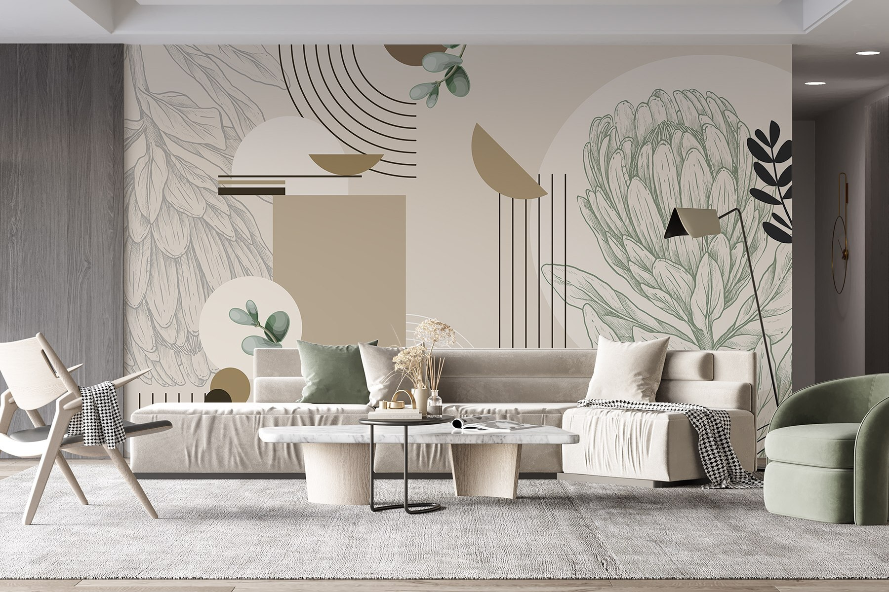 Trasformate il vostro spazio con questo splendido murale con delicati disegni di piante e foglie che sussurrano comfort ed eleganza. Immaginate di entrare in una stanza che sembra un sereno rifugio in giardino: il verde tenue e le tonalità della terra portano vibrazioni tranquille, perfette per rilassarsi dopo una lunga giornata. Il mix giocoso di forme aggiunge un tocco di modernità, rendendolo un ottimo spunto di conversazione. Gli amici chiederanno come fare per averne uno! Che si tratti di un angolo accogliente o di una parete di rappresentanza, questo murale invita la natura all’interno, creando un’atmosfera fresca e invitante. Immaginate di accoccolarvi con un buon libro e di immergervi in un ambiente tranquillo: pura beatitudine!