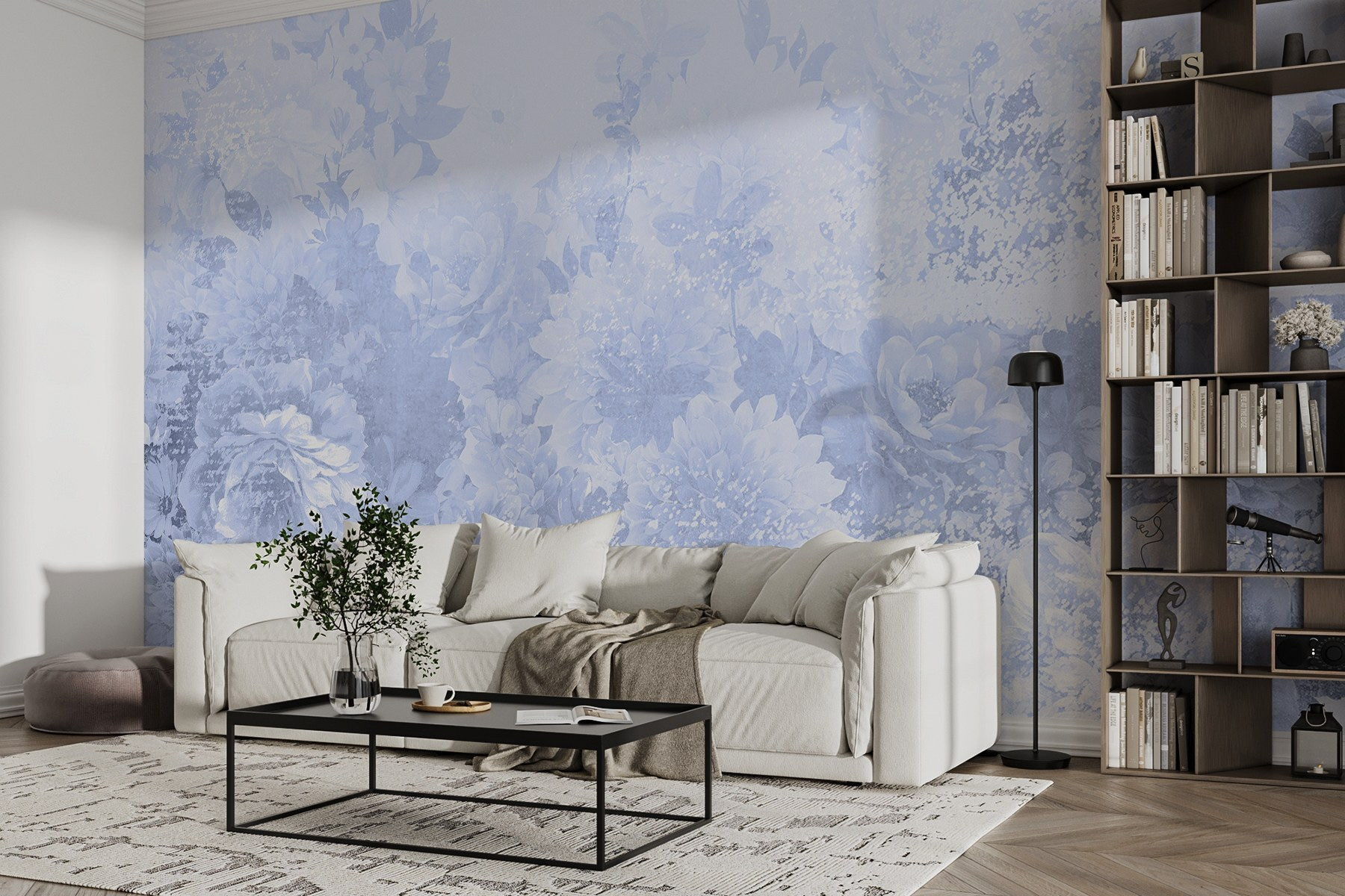 Guardate esattamente come apparirà il vostro spazio con la nuova carta da parati prima di acquistarla. Visualizzazione professionale da parte di designer esperti senza alcun costo o obbligo di acquisto.