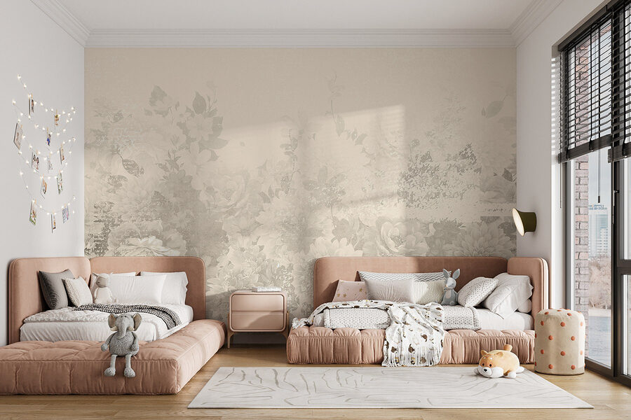 Sia che si tratti di un angolo accogliente o di una zona living vivace, questo murale aggiunge un tocco di estrosità che farà fare agli ospiti un doppio sguardo. I motivi floreali portano vita ed energia: chi non vorrebbe il fascino dei fiori che sbocciano per rallegrare la propria giornata? È un tocco artistico che rinfresca e invita, come un caldo abbraccio di un amico.