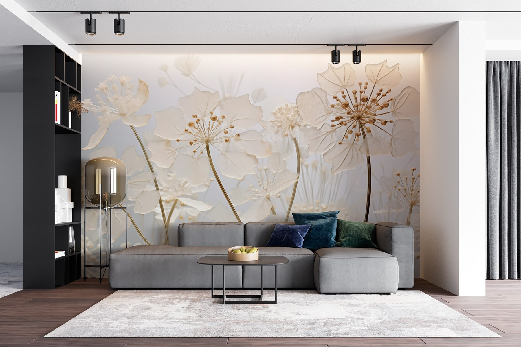 Guardate esattamente come apparirà il vostro spazio con la nuova carta da parati prima di acquistarla. Visualizzazione professionale da parte di designer esperti senza alcun costo o obbligo di acquisto.