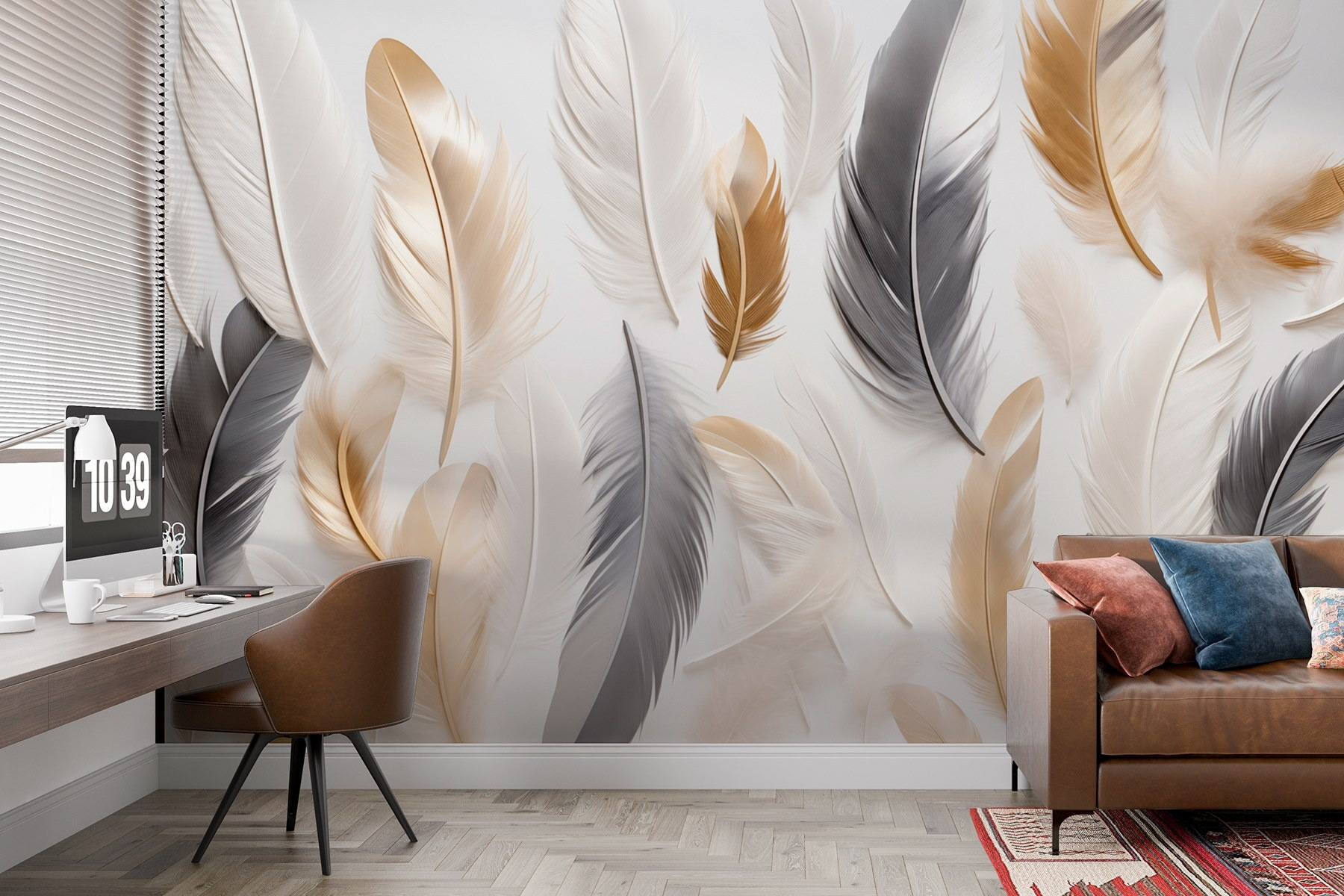 Trasformate qualsiasi ambiente con questo splendido murale che presenta una splendida composizione di piume su uno sfondo bianco. È come se portasse a casa vostra un’atmosfera di leggerezza e di brezza. Immaginate di svegliarvi ogni mattina con questo elegante disegno, che vi ricorda le tranquille giornate trascorse all’aria aperta. Il mix di sfumature di piume dà una sensazione di profondità: ognuna sembra avere una propria personalità, in attesa che qualcuno la noti. Perfetto per un accogliente angolo lettura o per un elegante ingresso, è il tipo di opera d’arte che farà fare agli ospiti il doppio gioco. Lasciate che le vostre pareti raccontino una storia, invitando il calore e un tocco di natura all’interno.