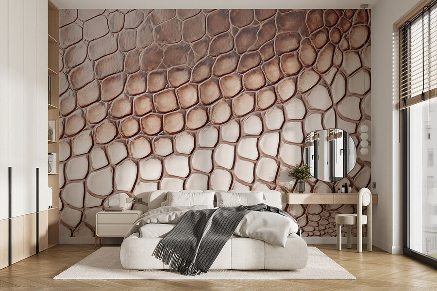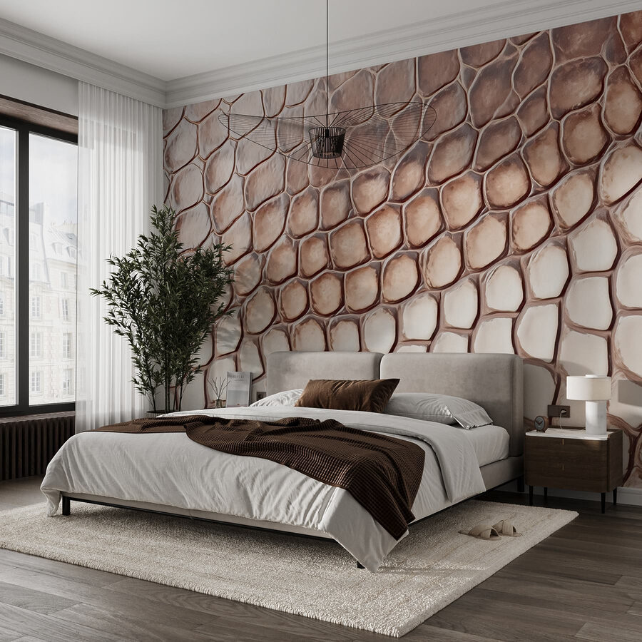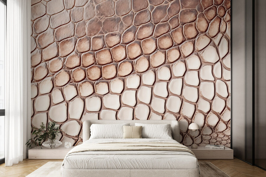 Trasformate il vostro spazio con un murale audace e intrigante, caratterizzato da un motivo a pelle di rettile. Immaginate di entrare in una stanza un po’ selvaggia, ma sorprendentemente accogliente. Questo disegno aggiunge un tocco inaspettato, rendendo le pareti più vivaci. Perfetto per una parete caratteristica di un salotto o di uno spazio di lavoro creativo, invita a sguardi curiosi e complimenti.