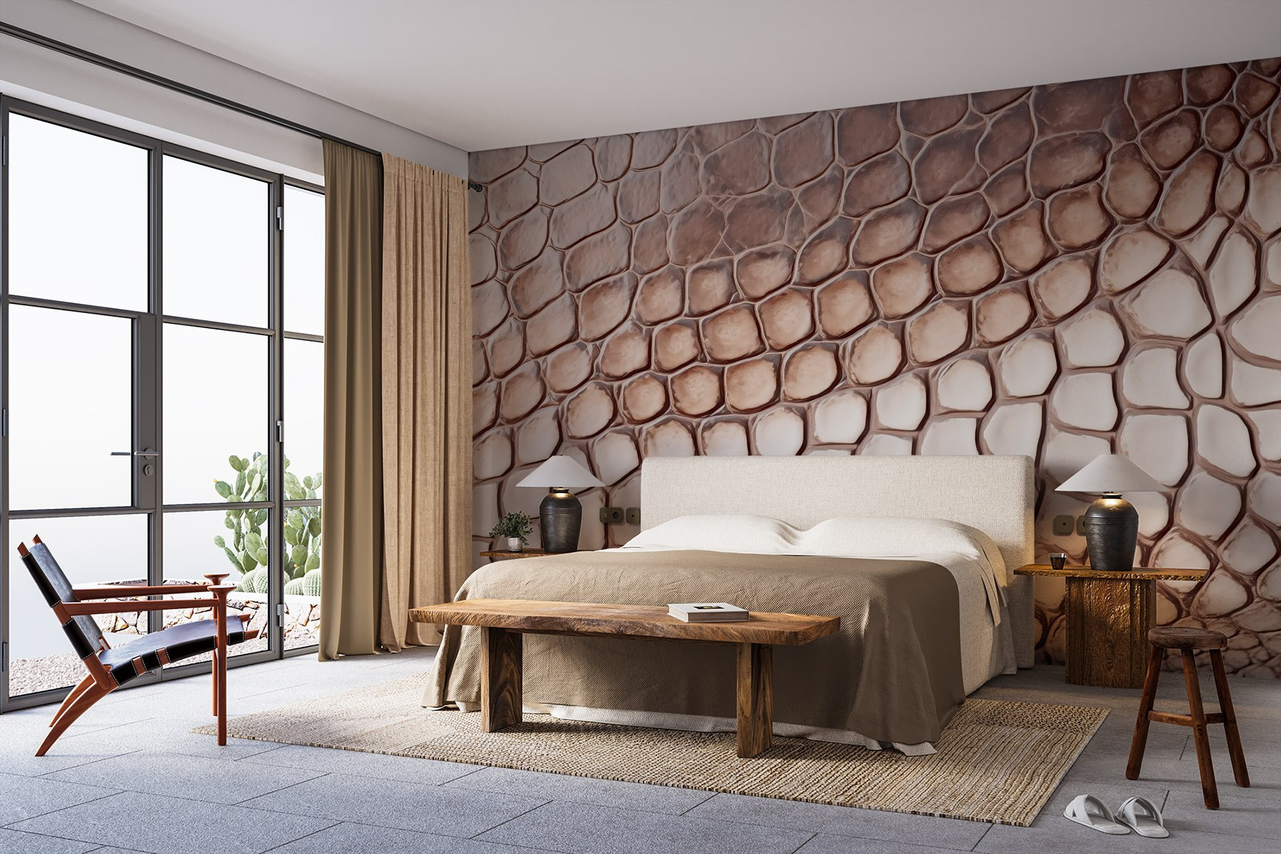 Trasformate il vostro spazio con un murale audace e intrigante, caratterizzato da un motivo a pelle di rettile. Immaginate di entrare in una stanza un po’ selvaggia, ma sorprendentemente accogliente. Questo disegno aggiunge un tocco inaspettato, rendendo le pareti più vivaci. Perfetto per una parete caratteristica di un salotto o di uno spazio di lavoro creativo, invita a sguardi curiosi e complimenti.