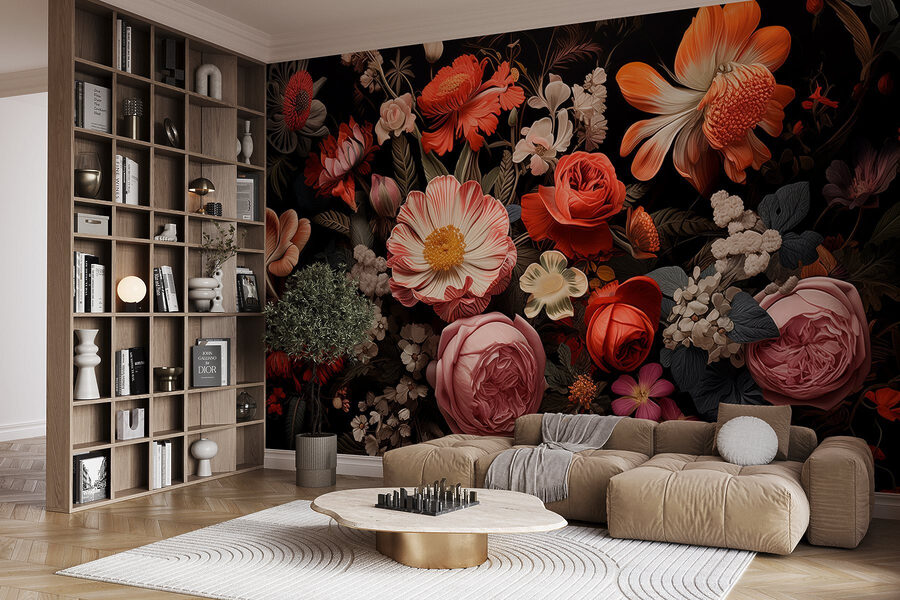Trasformate qualsiasi ambiente con questo splendido murale che raffigura un vivace gruppo di fiori su un ricco sfondo nero. Immaginate di entrare ogni giorno in un accogliente caffè o in un incantevole giardino, proprio a casa vostra. Sentite questi scoppi di colore e di vita sollevare il vostro spirito mentre vi muovete nel vostro spazio. Questo murale non è solo una decorazione, è come un amico allegro, che aggiunge calore e personalità a qualsiasi parete. Perfetto per un soggiorno o una zona pranzo, invita a ricevere infiniti complimenti e sguardi curiosi. Liberate l’artista che è in voi con un tocco di magia floreale!