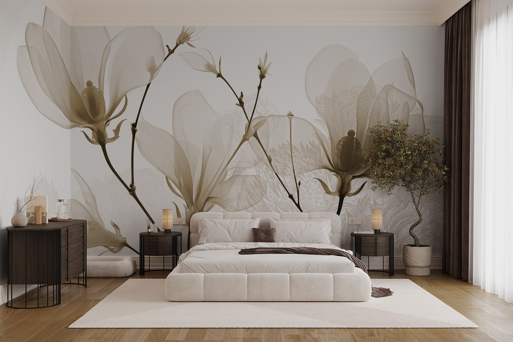 Trasformate qualsiasi stanza in un rifugio tranquillo con questo murale di delicati fiori dalle tonalità tenui. Immaginatevi il risveglio con dolci vibrazioni floreali che sussurrano serenità, perfette per sorseggiare un caffè o per dedicarsi alla lettura. Le linee sottili e i toni tenui creano un’aria di raffinatezza, senza farvi sudare. Gli amici si stupiranno di come un’aggiunta così semplice possa elevare l’intero spazio. È quasi come portare un giardino in casa, senza il fastidioso polline! Che si tratti di un angolo accogliente o di un pezzo forte, crea l’atmosfera giusta, non credete?
