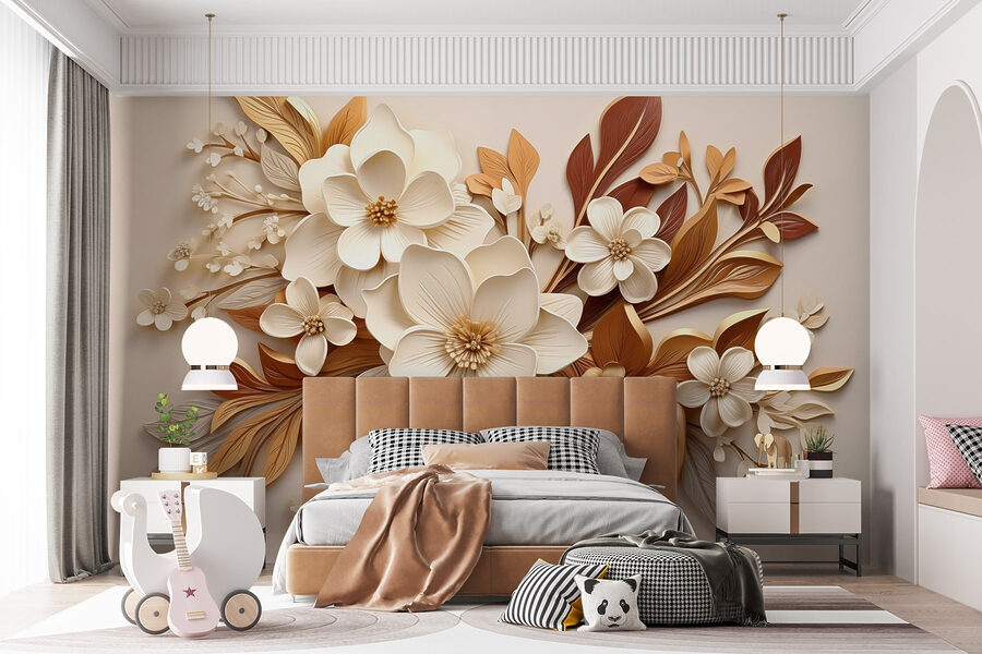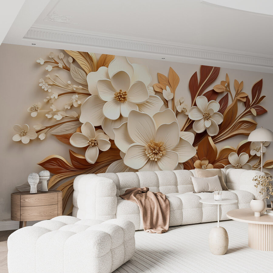 Trasformate qualsiasi spazio con questo affascinante murale caratterizzato da un delizioso mix di fiori bianchi e marroni. Immaginate di entrare in una stanza che sembra più un giardino illuminato dal sole che delle semplici pareti. Il disegno trasmette calore e vibrazioni accoglienti, perfette per quell’angolo in cui ci si può rannicchiare con un buon libro o sorseggiare un caffè sognando ad occhi aperti. Ogni petalo e ogni foglia si combinano bene tra loro, creando un punto focale morbido che invita alla conversazione. Davvero, riuscite a immaginare i vostri ospiti che lo ammirano? È come avere un pezzo di natura in casa, senza il polline.