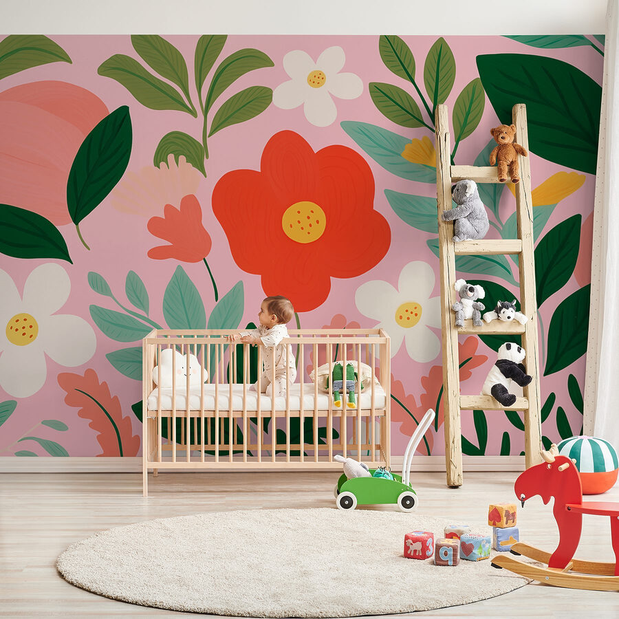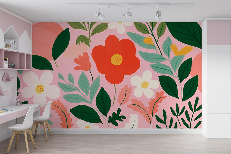 Trasformate qualsiasi stanza in un paradiso fiorito con questo vivace murale di fiori e foglie. L’allegra tavolozza danza con rossi vivaci, rosa tenui e verdi freschi, facendo sentire la primavera tutto l’anno. Immaginate di stare a casa, circondati da questa esplosione di natura, e di essere improvvisamente trasportati in un giardino soleggiato, con tanto di fiori stravaganti che sembrano rallegrarvi. Perfetto per ravvivare un salotto o per creare un accogliente angolo lettura, questo murale è come un abbraccio della natura. Immaginatelo: sorseggiate un caffè, ammirate le allegre vibrazioni e magari sognate ad occhi aperti la vostra prossima avventura all’aria aperta.