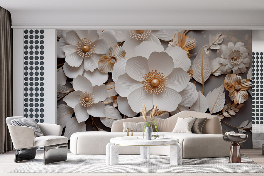 1 recensione per Carta da parati Elegante design floreale in toni tenui