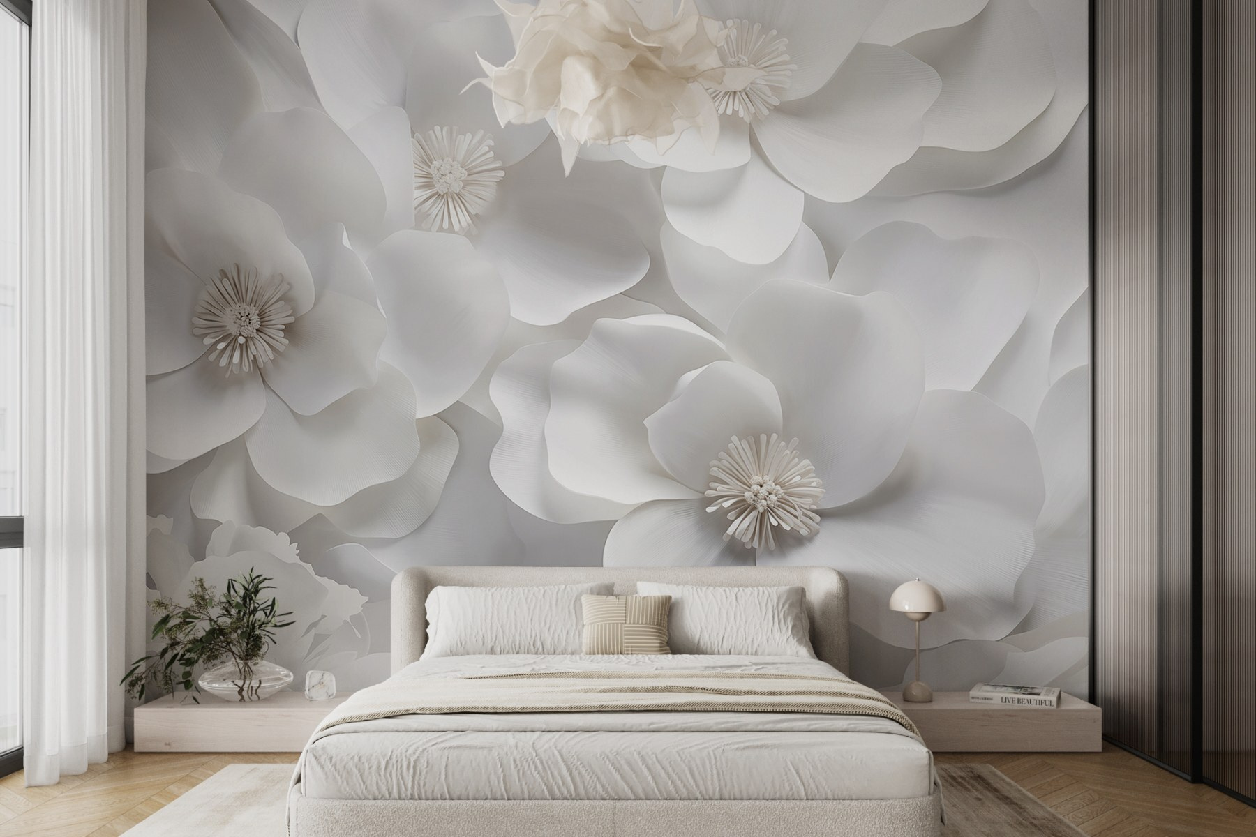 Trasformate uno spazio noioso in un rifugio sereno con il “Gruppo murale di fiori bianchi”. Immaginate di entrare in una stanza dove sbocciano fiori sovradimensionati, portando un tocco di natura all’interno. La tavolozza morbida e discreta favorisce un’aria di calma, perfetta per le notti in casa o per i vivaci brunch con gli amici. È come guardare un giardino all’alba: delicato, fresco e rinvigorente. Inoltre, chi non vorrebbe essere circondato da fiori tutto l’anno? Perfetto per una camera da letto, un soggiorno o anche un ufficio chic. Dite addio alle pareti semplici e date il benvenuto a un abbraccio floreale!