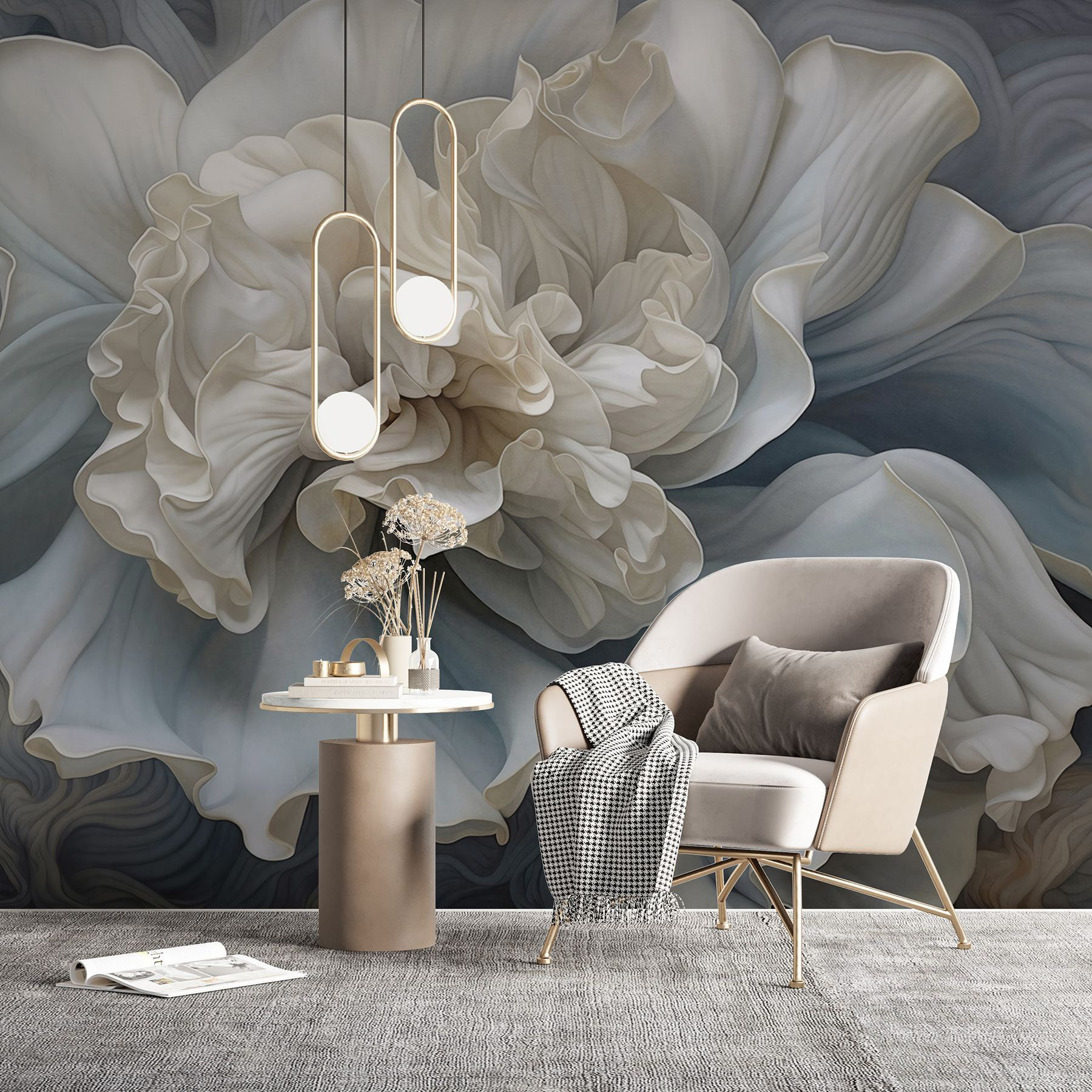 Carta da parati Fiore bianco con volant Carta da parati Fiore bianco con volant